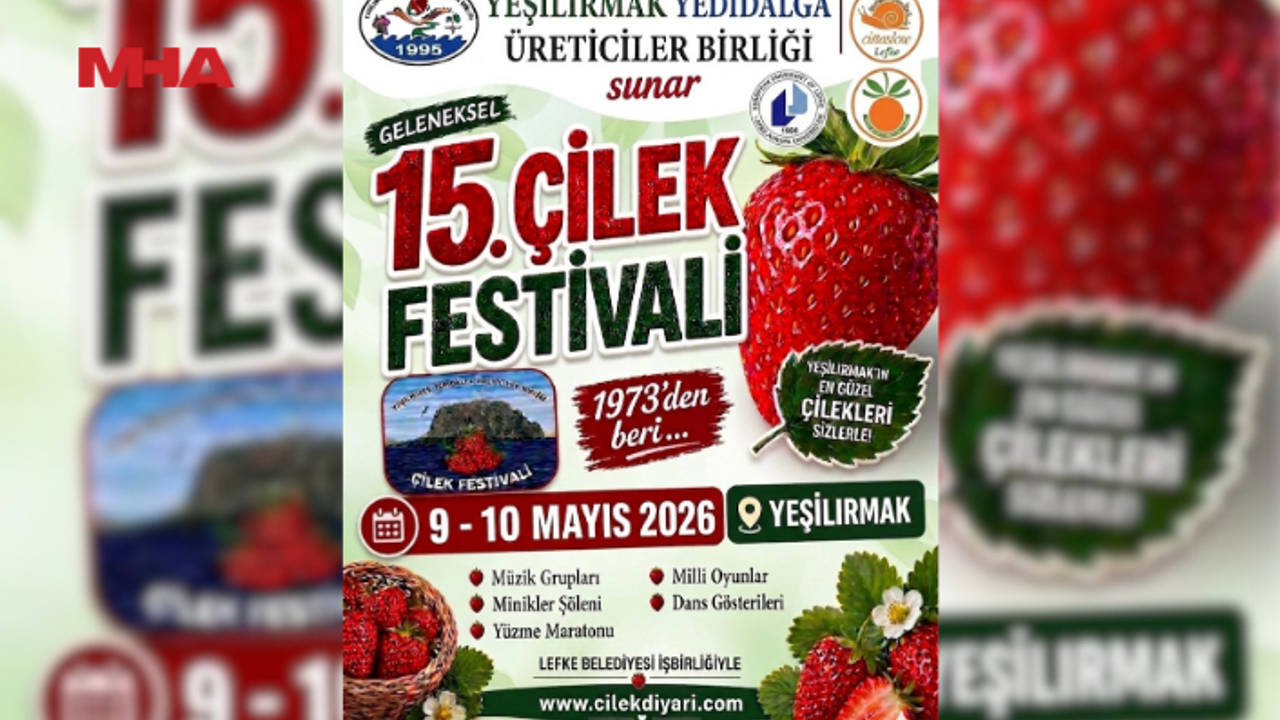 Yeşilırmak-Yedidalga Üreticiler Birliği tarafından düzenlenecek 15. Çilek Festivali 9-10 Mayıs tarihlerinde yapılacak.