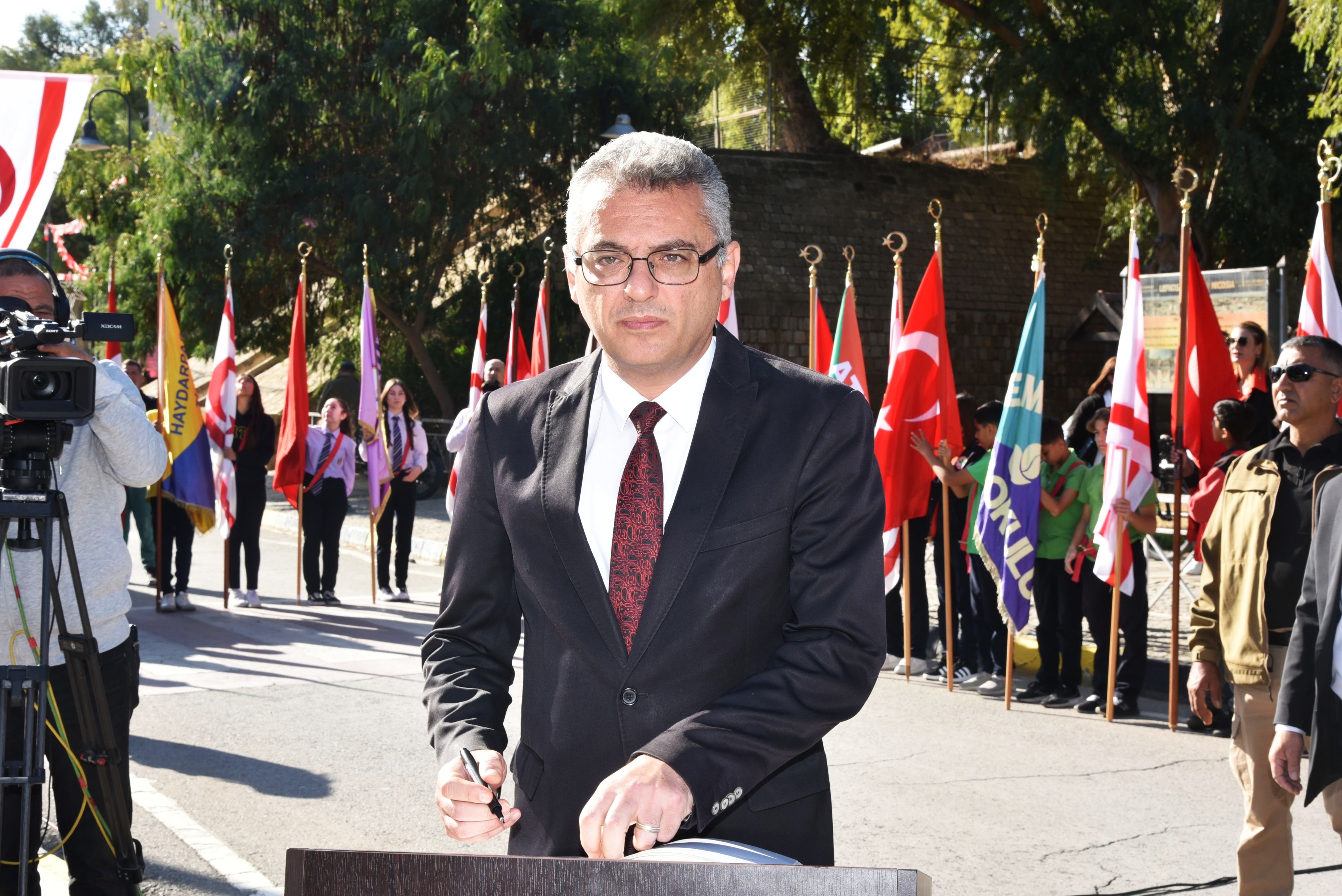 “Ömrünü, varlığından güç aldığı Aziz Türk Milletine adayan, Cumhuriyetimizin Kurucusu, Ebedi Başkomutanımız Gazi Mustafa Kemal Atatürk; büyük bir coşku ve gururla kutladığımız Kuzey Kıbrıs Türk Cumhuriyeti'nin kuruluşunun 42’nci yıl dönümünde huzurunuzdayız.