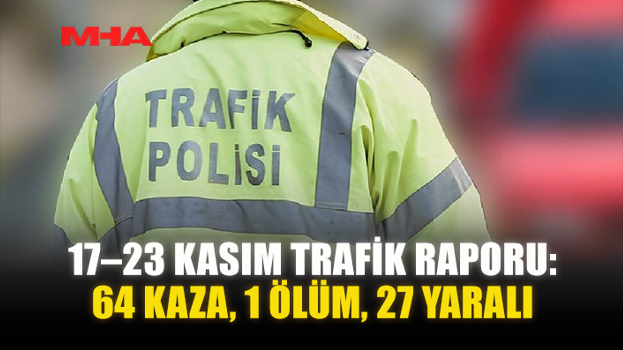 17 Kasım – 23 Kasım 2025 tarihleri arasında Kuzey Kıbrıs genelinde toplam 64 trafik kazası meydana geldi. Polis Basın Subaylığı’nın açıkladığı verilere göre kazaların 1’i ölümle, 20’si yaralanmayla, 43’ü ise hasarla sonuçlandı. Ölümle sonuçlanan kazada 1 kişi yaşamını yitirirken, yaralanmalı kazalarda toplam 27 kişi yaralandı.
