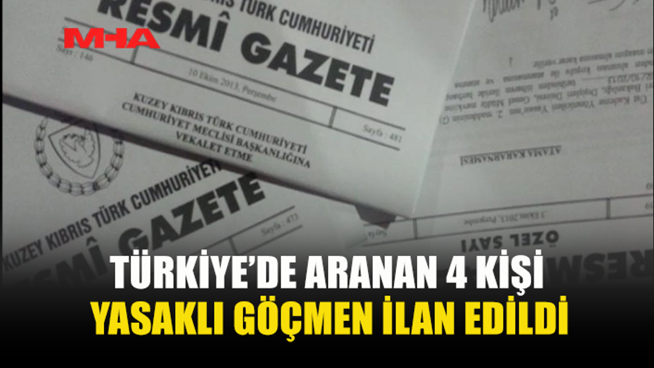 Resmi Gazete’de yayımlanan Bakanlar Kurulu kararına göre, Türkiye Cumhuriyeti’nde çeşitli suçlardan aranan ve iadesi talep edilen 4 kişi yasaklı göçmen ilan edildi.
