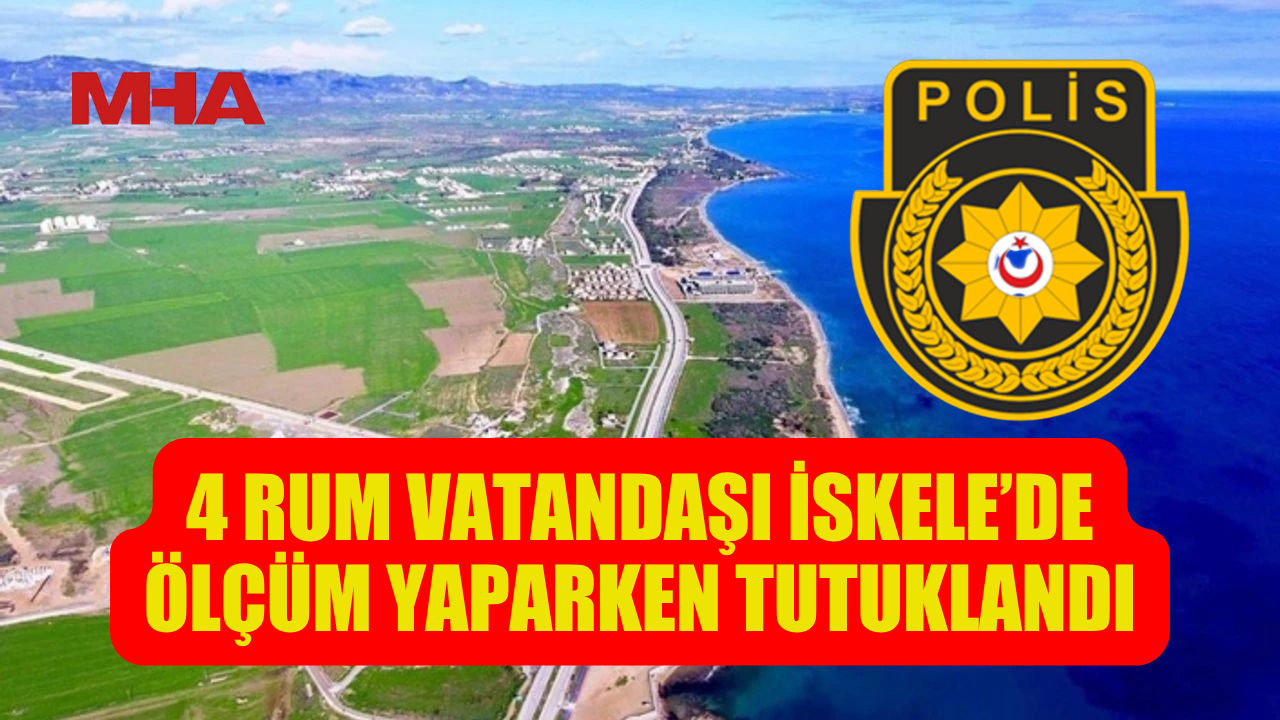 İskele bölgesinde izinsiz bir şekilde bir arazi ölçümü yaptığı sırada 4 rum vatandaşı şahıs suç üstü yakalanıp tutuklandı.