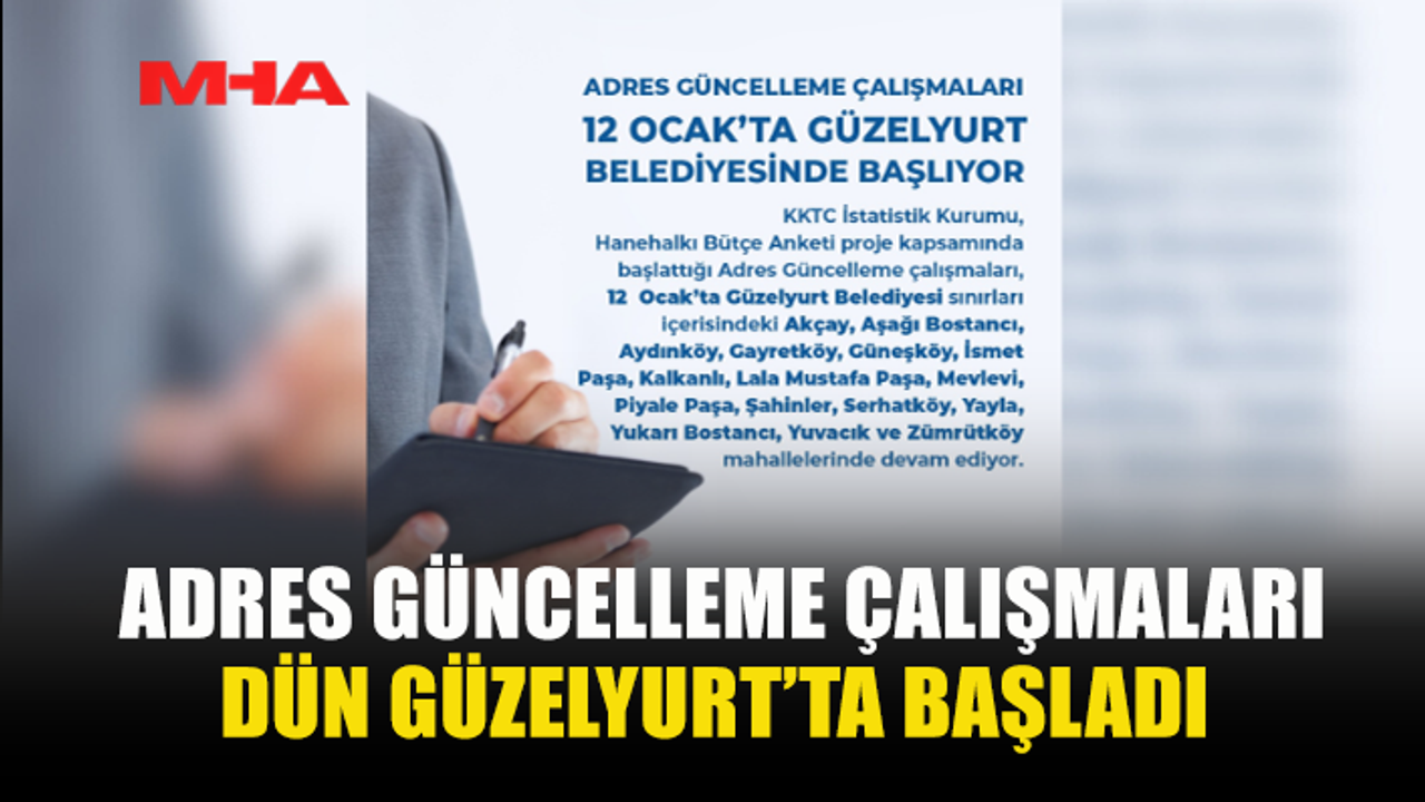 İstatistik Kurumu’ndan verilen bilgiye göre, adres güncelleme çalışmaları Güzelyurt Belediye sınırlarındaki şu bölgelerde devam edecek: