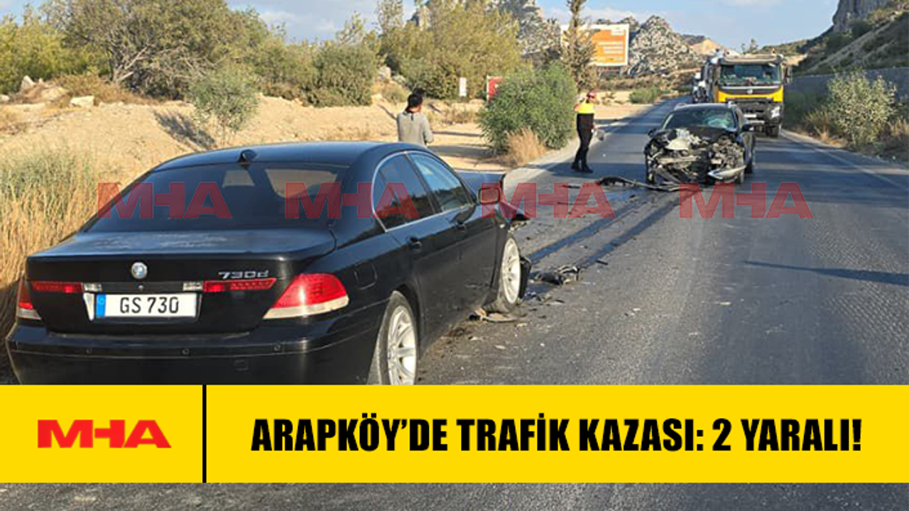 Polis Basın Subaylığı'ndan alınan bilgiye göre 02.10.2025 tarihinde, saat 16.35 raddelerinde Arapköy'de, Değirmenlik-Girne anayolu 12-13. kilometreleri üzerinde (Arapköy Doğu çıkışı üst kısmı) Batı istikametine doğru seyreden Duran İNCE (E-61) yönetimindeki NB732 plakalı salon araç sürücüsünün dikkatsizliği ve sağ şerite geçmesi sonucu o esnada karşı istikametten gelmekte olan Özkan SÖNMEZ (E-33) yönetimindeki GS730 plakalı salon aracın ön kısmına çarpmıştır. Kaza sonucu yaralanan her iki araç sürücüsü ambulans ile Girne Akçiçek Hastanesine kaldırılıp, müşahede altına alınmıştır.