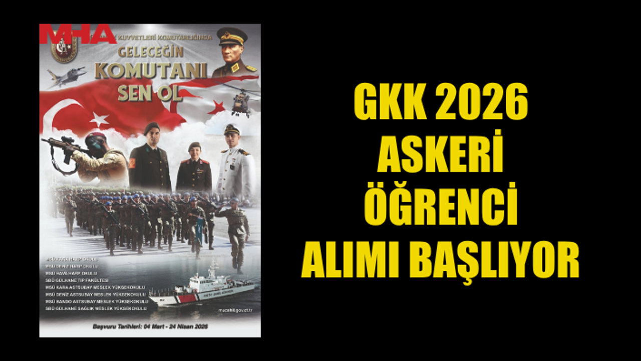 Güvenlik Kuvvetleri Komutanlığı, 2026 yılı askerî öğrenci temini kapsamında başvuruların 04 Mart – 24 Nisan 2026 tarihleri arasında yapılacağını duyurdu. Başvurular, Millî Savunma Üniversitesi ve Sağlık Bilimleri Üniversitesi’ne bağlı askerî okullarda 2026-2027 eğitim-öğretim yılında öğrenim görmek isteyen adayları kapsıyor.
