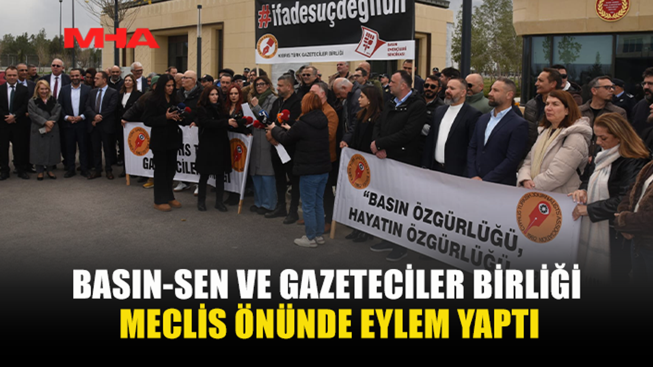 Kıbrıs Türk Gazeteciler Birliği (KTGB) ve Basın Emekçileri Sendikası (Basın-Sen), Cumhuriyet Meclisi önünde eylem yaparak Ceza (Değişiklik) Yasa Tasarısı ve Bilişim Suçları (Değişiklik) Yasa Tasarısının geri çekilmesini talep etti.