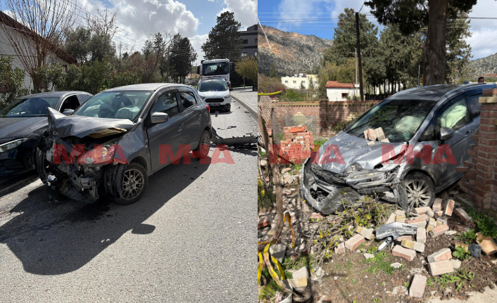 Boğazköy’de dikkatsizce ana yola çıkan aracın neden olduğu kazada bir araç bahçe duvarına çarptı.