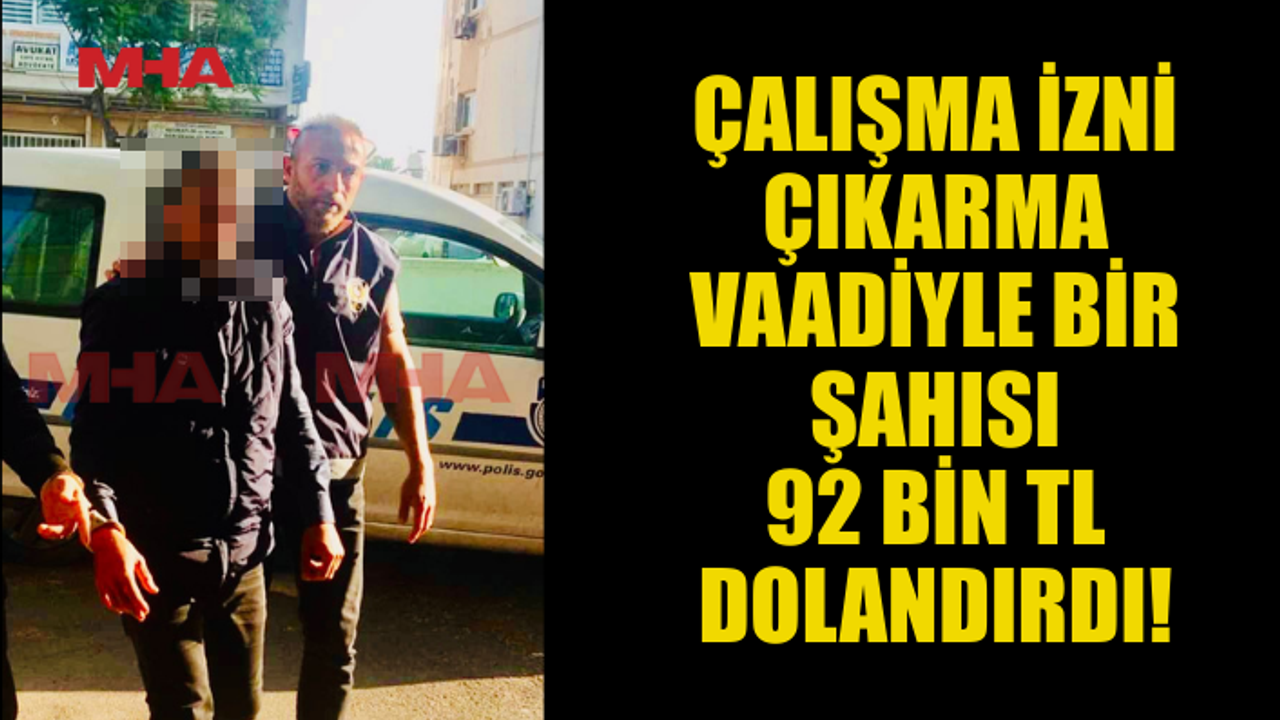 (28.11.2025...MHA...) Çalışma izni çıkaracağı vaadiyle bir şahsın 92 bin TL parasını dolandırdı.