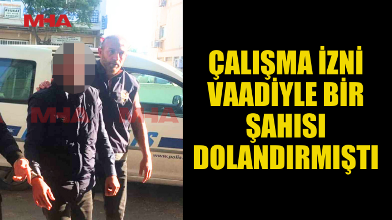 (12.01.2025...MHA...) Çalışma izni çıkaracağı vaadiyle bir şahsın 92 bin TL parasını dolandıran İran uyruklu M.N.K. teminata bağlandı.