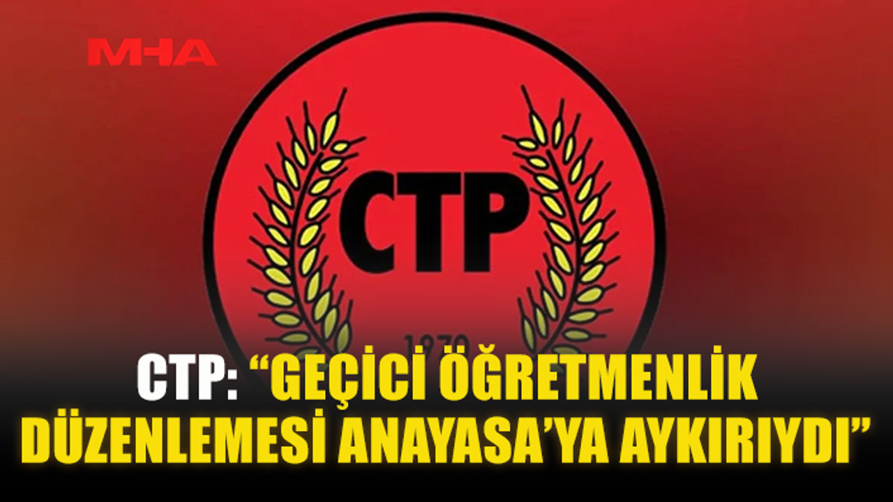 Cumhuriyetçi Türk Partisi (CTP), Anayasa Mahkemesi’nin 2022’de yapılan Öğretmenler Yasası’nda “İlköğretim öğretmeni olabilmek için 36 ay geçici öğretmenlik yapanların öğretmenlik sınavına girerek kadrolanması” düzenlemesini iptal etmesinin, CTP’nin kamusal eğitimin niteliğinin bozulduğuna dair uzun süredir dile getirdiği itirazlarının teyidi olduğunu açıkladı.