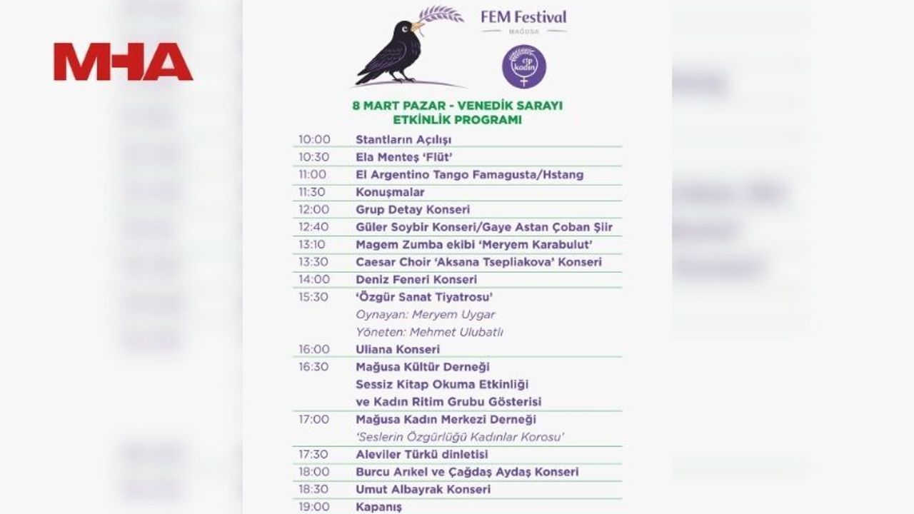 Gazimağusa’da ilk kez düzenlenecek olan Fem Festival, 8 Mart Pazar günü saat 10.00’da kapılarını açacak. Gün boyu sürecek etkinlikte, kadınların el emeği ürünlerinin sergileneceği stantların yanı sıra; tiyatro gösterileri, modern danslar, korolar ve konserler yer alacak.