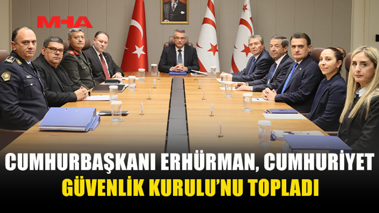 Cumhurbaşkanı Tufan Erhürman başkanlığında Cumhuriyet Güvenlik Kurulu toplantısı yapıldı.Cumhurbaşkanlığı’ndaki toplantıya Meclis Başkanı Ziya Öztürkler, Başbakan Ünal Üstel, Güvenlik Kuvvetleri Komutanı Tümgeneral İlker Görgülü, Dışişleri Bakanı Tahsin Ertuğruloğlu, Maliye Bakanı Özdemir Berova, İçişleri Bakanı Dursun Oğuz, Polis Genel Müdürü Ali Adalıer ve Başbakanlık Hukuk İşleri Amiri Nezhan Kayasal Ertemel katıldı.