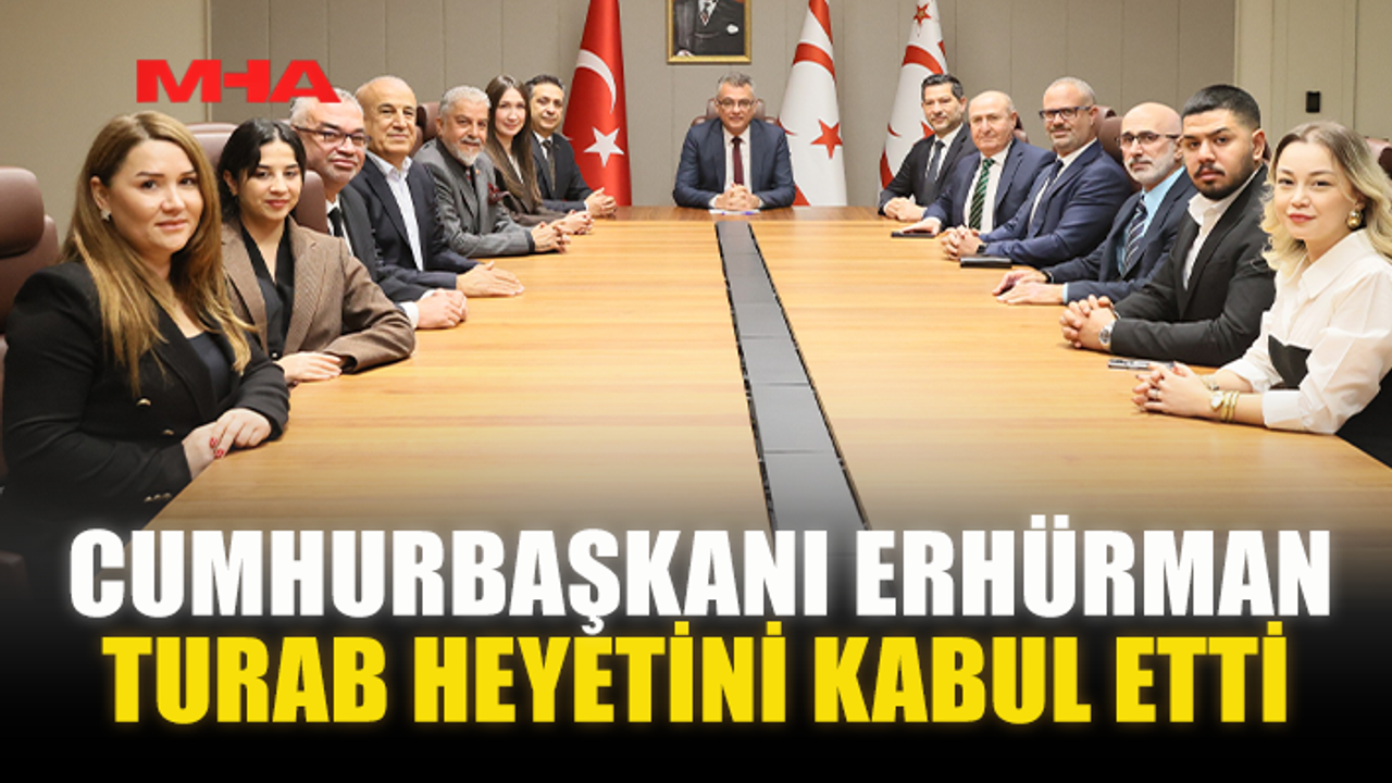 Cumhurbaşkanı Tufan Erhürman, Türk – Arap ve Avrupa Birliği Ülkeleri İş İnsanları Derneği (TURAB) Genel Başkanı Fahri Kuş ve yönetim kurulu üyelerini kabul etti.