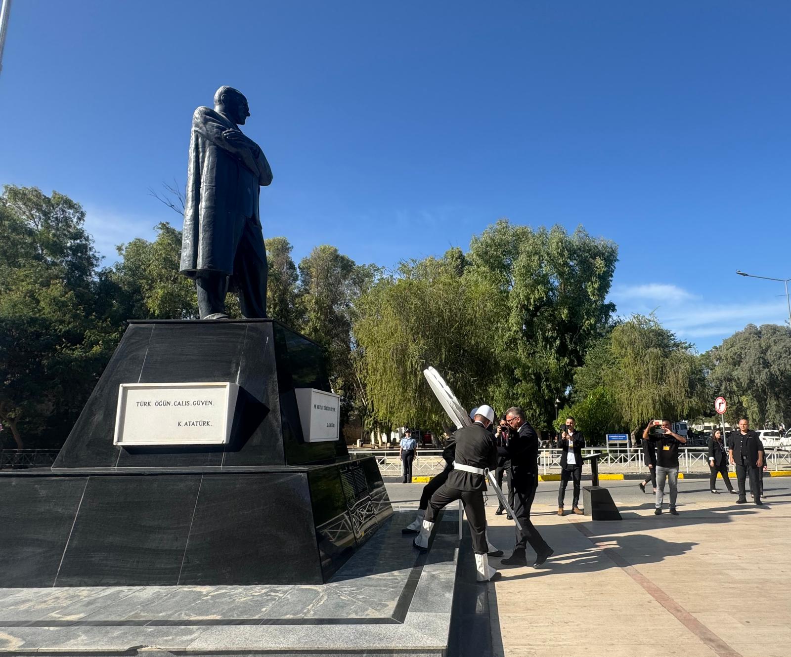 Cumhurbaşkanı Tufan Erhürman, Cumhuriyet Meclisi’nde düzenlenen ant içme töreninin ardından Lefkoşa Atatürk Anıtı’na çelenk sundu, anıt özel defterini imzaladı.