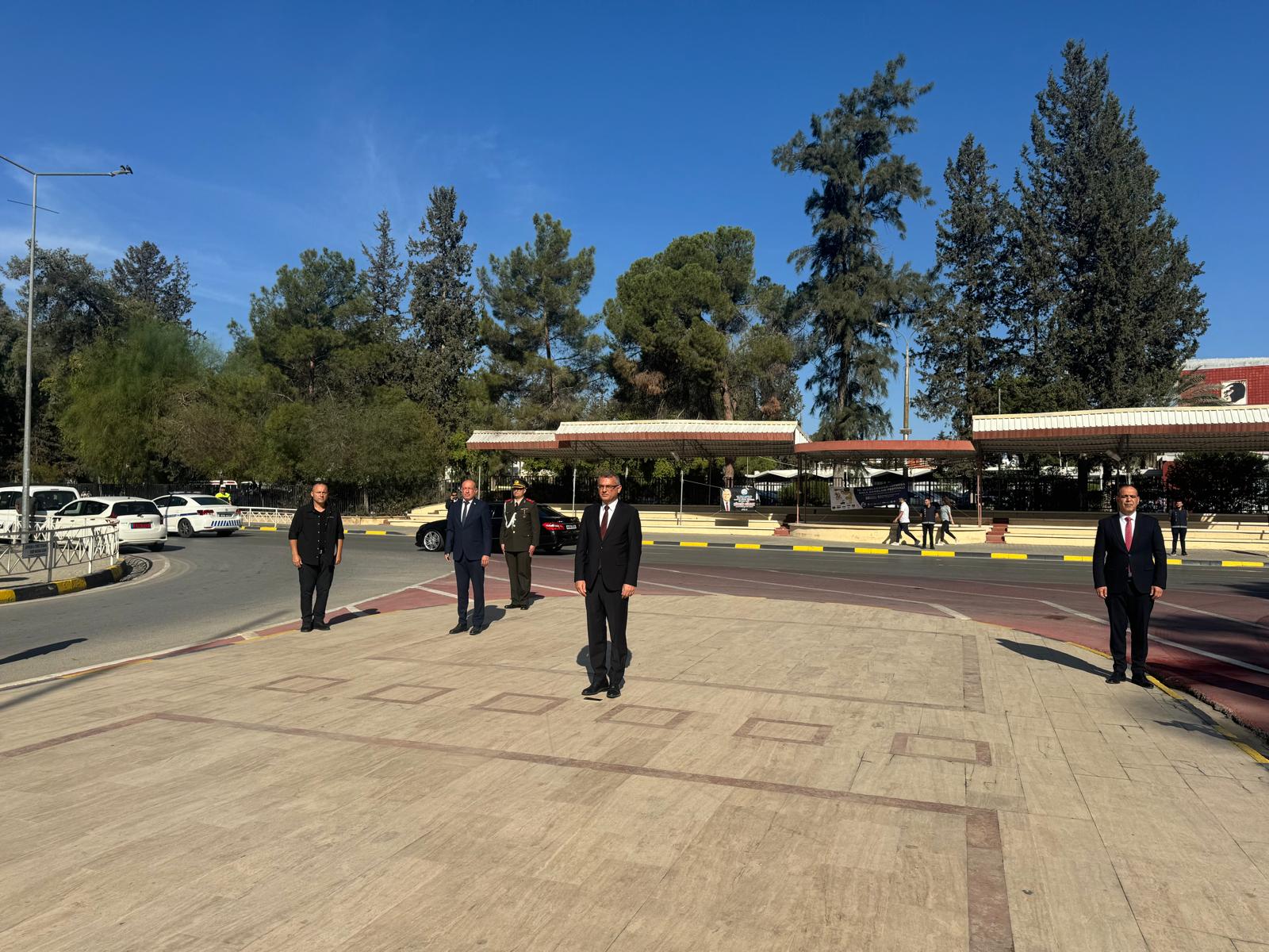 Anıta çelenk sunulmasıyla başlayan tören; saygı duruşu ve İstiklal Marşı eşliğinde bayrakların göndere çekilmesiyle devam etti. Tören, anıt özel defterinin imzalanmasıyla sona erdi.