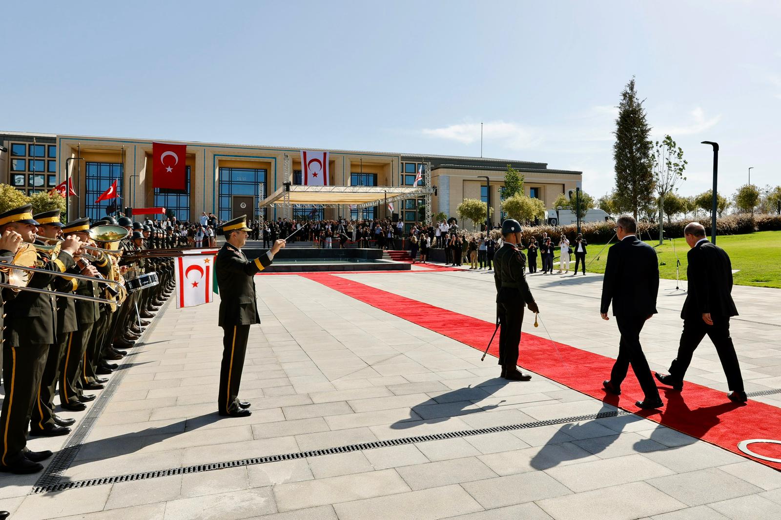 Tören kıtasının iki cumhurbaşkanı tarafından teftişinin ardından, Cumhurbaşkanı Erhürman Ersin Tatar’ı uğurladı.
