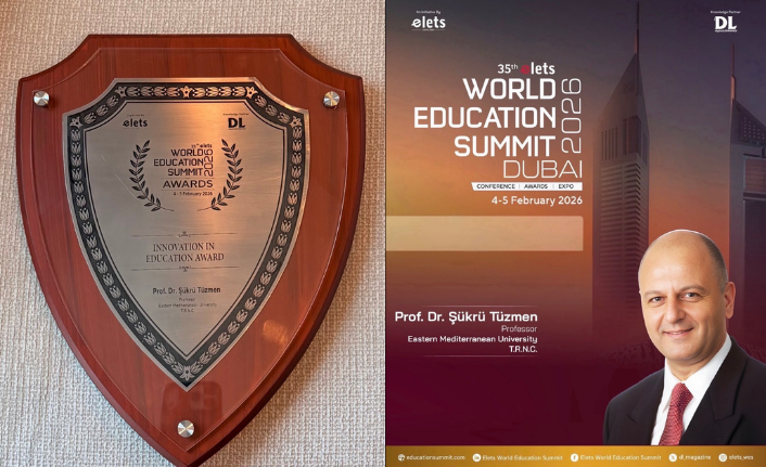 Doğu Akdeniz Üniversitesi (DAÜ) Diş Hekimliği Fakültesi Öğretim Üyesi Prof. Dr. Şükrü Tüzmen, dünyanın en prestijli eğitim organizasyonlarından biri olan 35. Elets World Education Summit kapsamında “Innovation in Education Award” (Eğitimde İnovasyon Ödülü) ödülüne layık görüldü. 4-5 Şubat 2026 tarihlerinde Birleşik Arap Emirlikleri’nin önemli merkezlerinden biri olan Dubai’de, Shangri-La Oteli’nde düzenlenen resmi program kapsamında ödülünü alan Prof. Dr. Tüzmen’e ödülü; eğitim alanındaki yenilikçi çalışmaları ve küresel ölçekteki katkıları nedeniyle verildi.