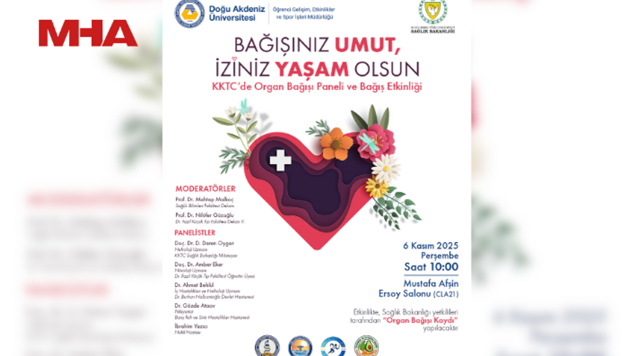 Doğu Akdeniz Üniversitesi’nde (DAÜ), Organ ve Doku Bağışı Haftası kapsamında “KKTC’de Organ Bağışı Paneli ve Bağış Etkinliği” düzenlenecek.