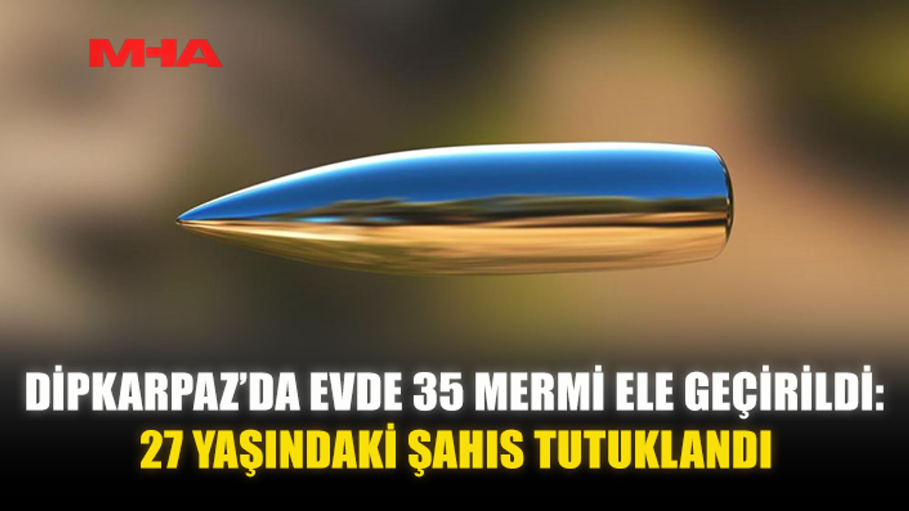 Polis Basın Subaylığı’ndan alınan bilgiye göre 17.10.2025 tarihinde, saat 18:00 sıralarında, Dipkarpaz'da, D.D.(E-27)’nin ikametgahında polis tarafından yapılan aramada, 35 adet 9 mm çapında canlı mermi bulunarak emare olarak alınmıştır. Bahse konu şahıs tutuklanmış olup, soruşturma devam etmektedir.