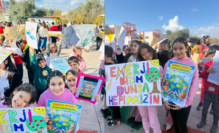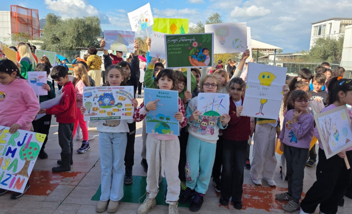 Öğrenciler ayrıca okul çevresinde pankartlarla yürüyüş yaparak enerji tasarrufuna yönelik sloganlar attı.