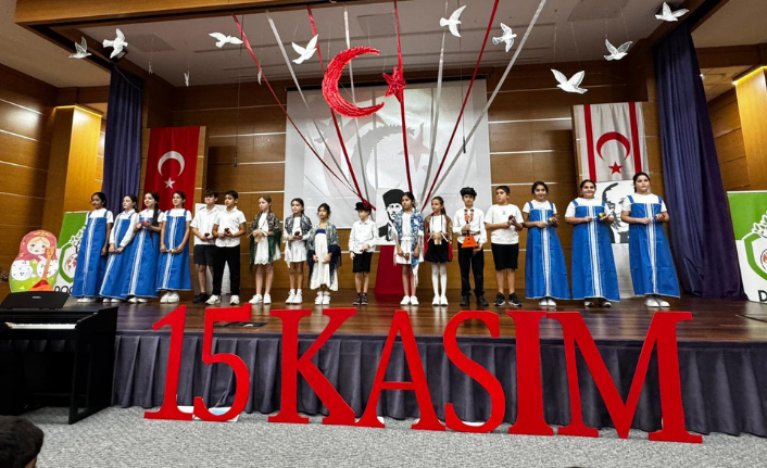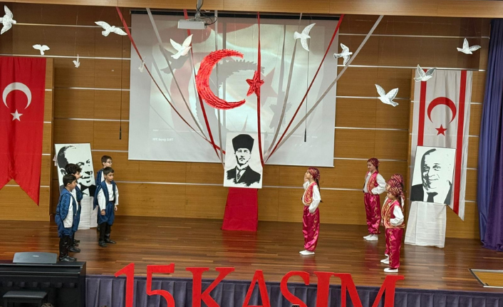 Duygu dolu anlara sahne olan programda, KKTC’nin kuruluş süreci, bağımsızlık mücadelesi ve milli değerler, öğrencilerin performanslarıyla yeniden canlandırıldı.
