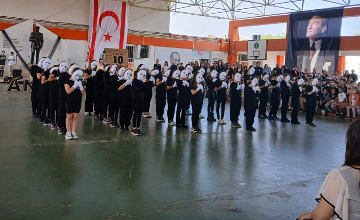 Öğrencilerin sunduğu pandomim gösterisi duygusal anlara sahne olurken, okul korosu Atatürk’ü anma temalı şarkılar seslendirdi. Tören, öğrencilerin öğretmenleri eşliğinde Atatürk büstüne çiçek bırakmalarıyla sona erdi. (MHA)