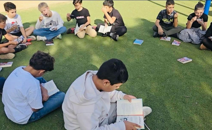 Öğrenciler, öğrenme, oyun oynama, kendini ifade etme ve özgürce vakit geçirme haklarını kullanarak, yemeklerini ve okuma etkinliklerini açık havada gerçekleştirdi.