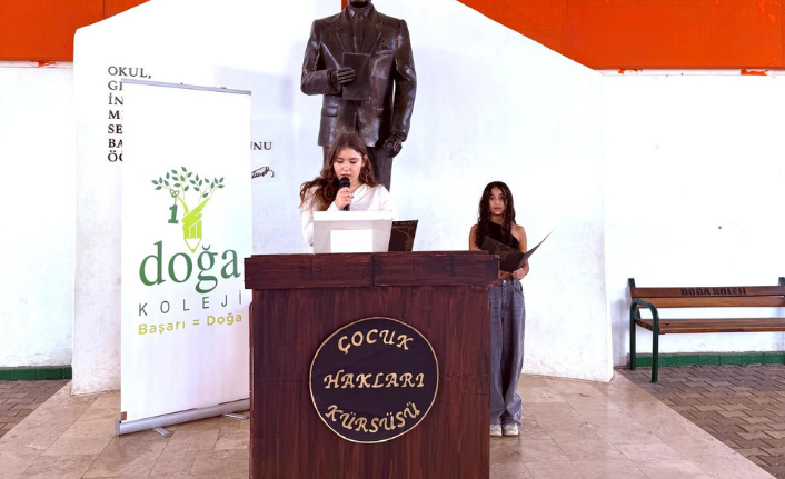 Ardından öğrenciler, hazırladıkları metinleri kürsüde paylaşarak hakların önemine dikkat çekti.