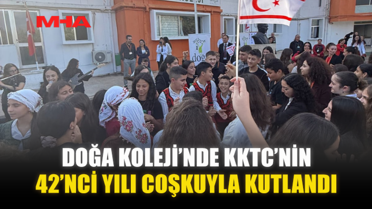 Kuzey Kıbrıs Türk Cumhuriyeti’nin (KKTC) 42’nci kuruluş yıldönümü, Doğu Akdeniz Doğa Koleji’nde düzenlenen törenle coşku içinde kutlandı. Program, saygı duruşu ve İstiklal Marşı’nın ardından yapılan konuşmayla başladı. Konuşmada, Cumhuriyet’in Kıbrıs Türk halkı için özgürlük, varoluş ve bağımsızlık mücadelesinin en güçlü simgesi olduğuna dikkat çekildi.