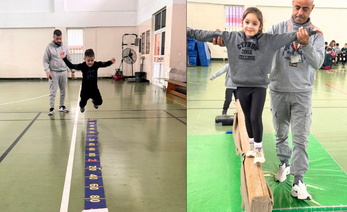 Öğretmenler eşliğinde gerçekleştirilen etkinlikte öğrenciler; engel parkuru, uzun atlama, slalom oyunu, denge tahtası ve sağlık topu gibi aktivitelerde yer aldı.