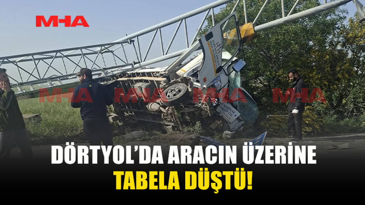 Dörtyol’da meydana gelen trafik kazasında, bir aracın üzerine tabela düştü. Olayda yaralananların olduğu bildirildi.