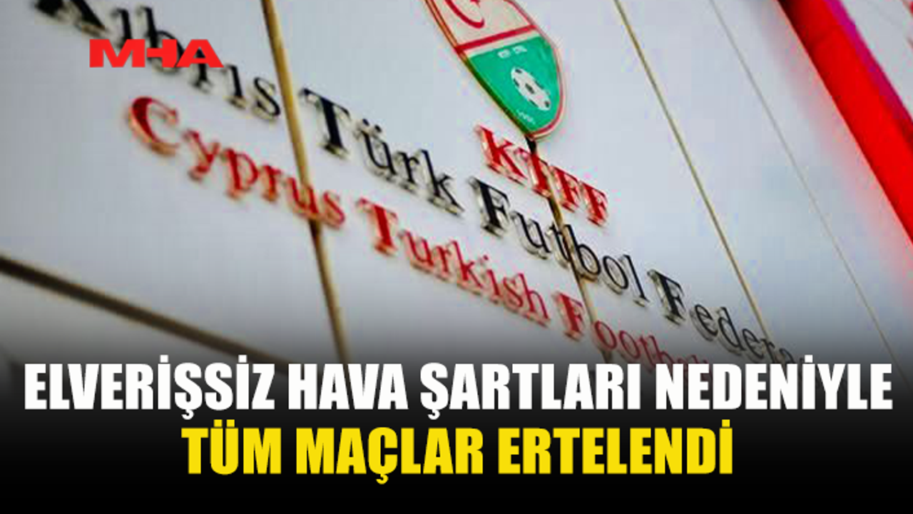 Kıbrıs Türk Futbol Federasyonu (KTFF) tarafından organize edilen AKSA Süper Lig, AKSA 1.Lig, AKSA A2 Süper Lig, AKSA A2 1.Lig ve Digiturk Kıbrıs BTM 1.Lig’de bugün ve yarın (24-25 Ocak 2026) oynanacak olan tüm karşılaşmalar futbol oynamaya elverişsiz hava ve saha koşulları sebebiyle ertelenmiştir. Tüm sahalarda yapılan kontroller sonucunda alınan karar doğrultusunda ilgili liglerdeki müsabakalar 1 hafta kaydırılarak 31 Ocak – 1 Şubat 2026 tarihi itibariyle kaldığı yerden devam edecektir. Ayrıca Kıbrıs Kupası 2. Tur’dan itibaren 1 hafta kaydırılarak yeniden programlandırılmıştır. Detaylı program ilerleyen günlerde paylaşılacaktır.