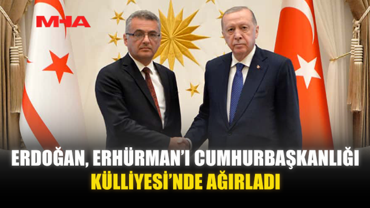 Ardından Türkiye Cumhuriyeti Cumhurbaşkanı Recep Tayyip Erdoğan, Erhürman’ı Cumhurbaşkanlığı Külliyesi'nin ana giriş kapısında karşıladı.