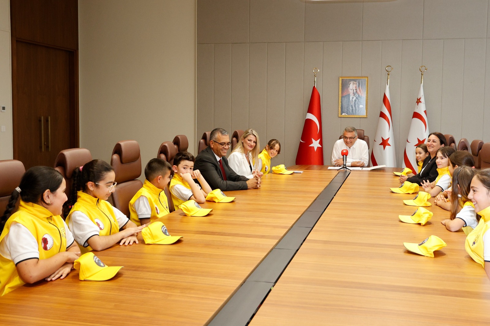 Cumhurbaşkanı Tufan Erhürman, 20 Kasım Çocuk Hakları Günü dolayısıyla ilkokul öğrencilerini kabul etti.