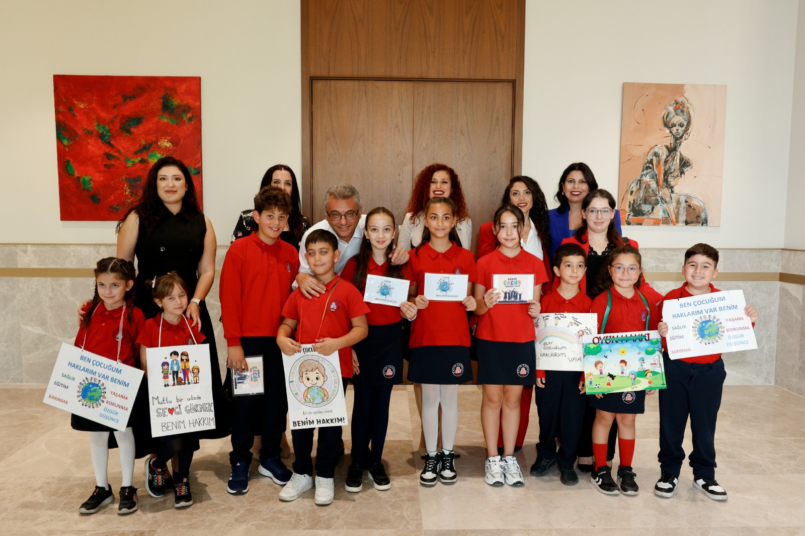 Öğrencilerle çocuk hakları üzerine sohbet eden Cumhurbaşkanı Erhürman, çocukların önerilerini ve hayallerini dinleyerek, okullardaki faaliyetler hakkında bilgi de aldı.