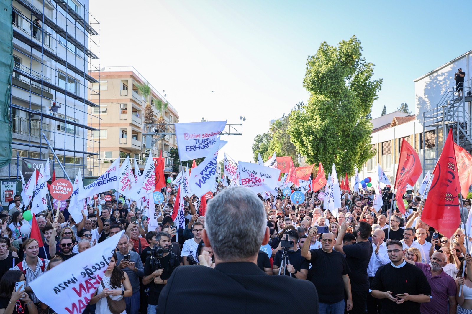 Cumhuriyetçi Türk Partisi (CTP) Genel Başkanı ve Cumhurbaşkanı adayı Tufan Erhürman, seçim öncesi son etkinliğini Lefkoşa Dereboyu’nda gerçekleştirdi.