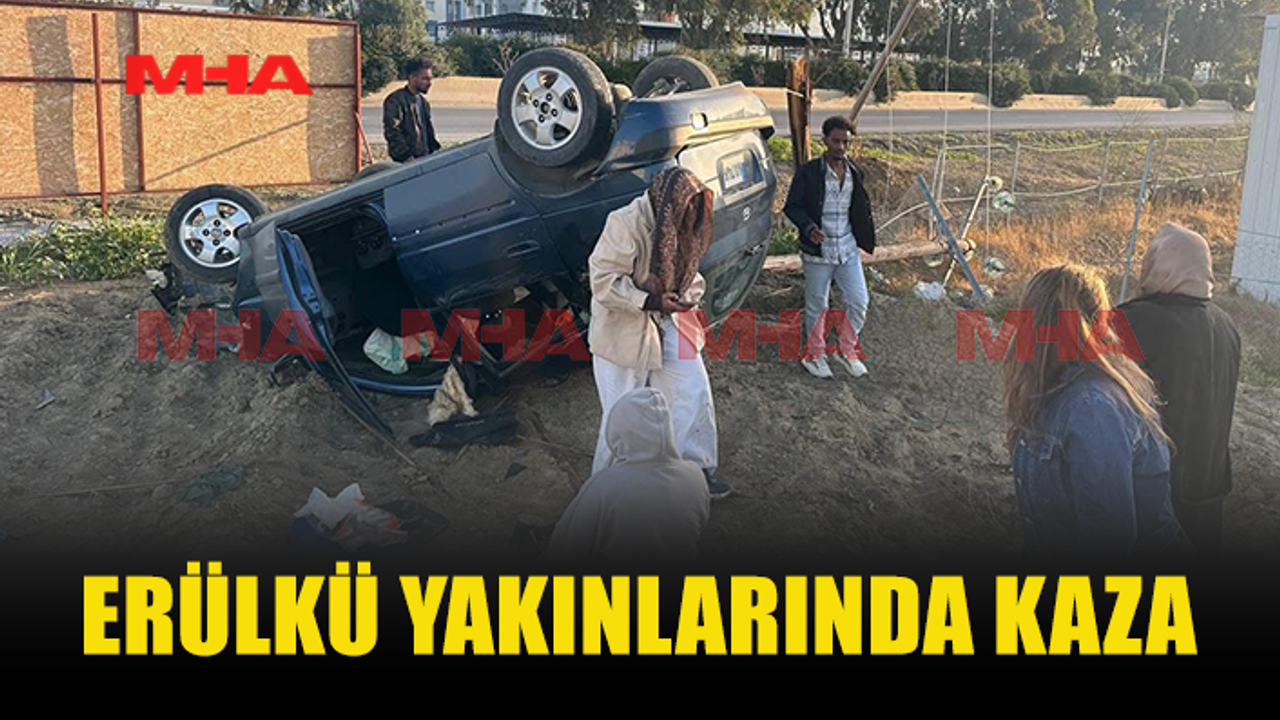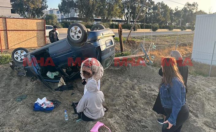 Bir araç bankete düşerek takla attı. Araçta bulunanlar, ters dönen arabadan dışarı çıkarıldı.