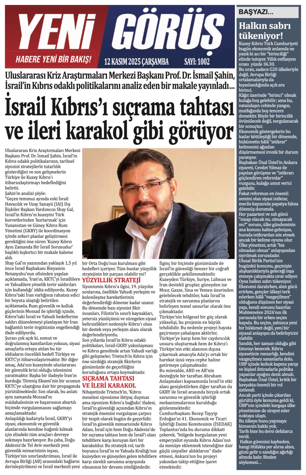 CYPRUS MAİL’DEN UYARI: “KIBRIS, İSRAİL’İN STRATEJİK PLANLARINA BAĞLANIYOR”