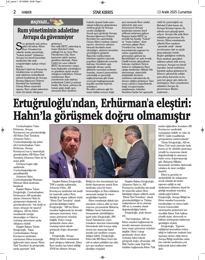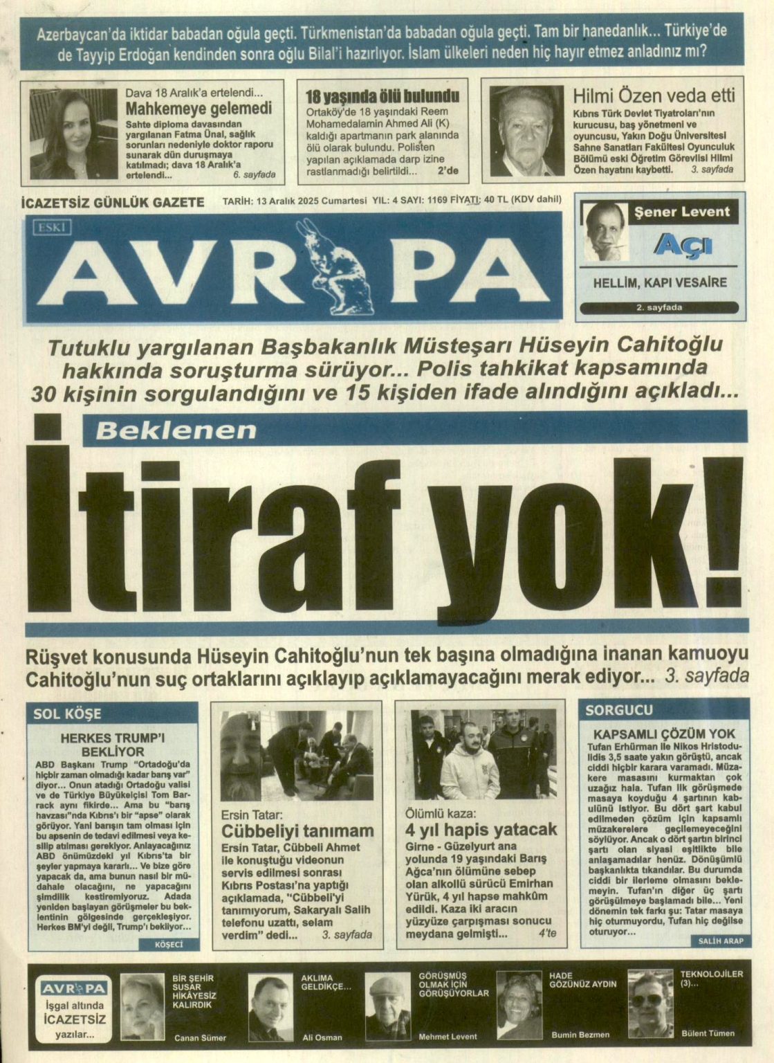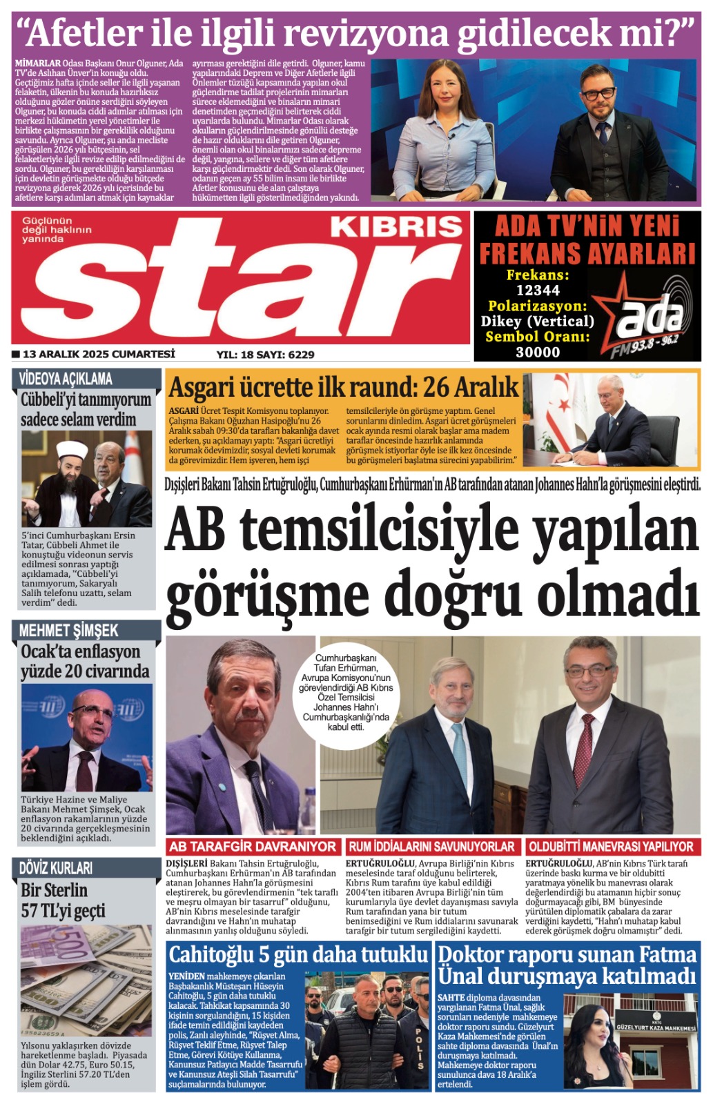 GAZETE MANŞETLERİ (13 ARALIK 2025)