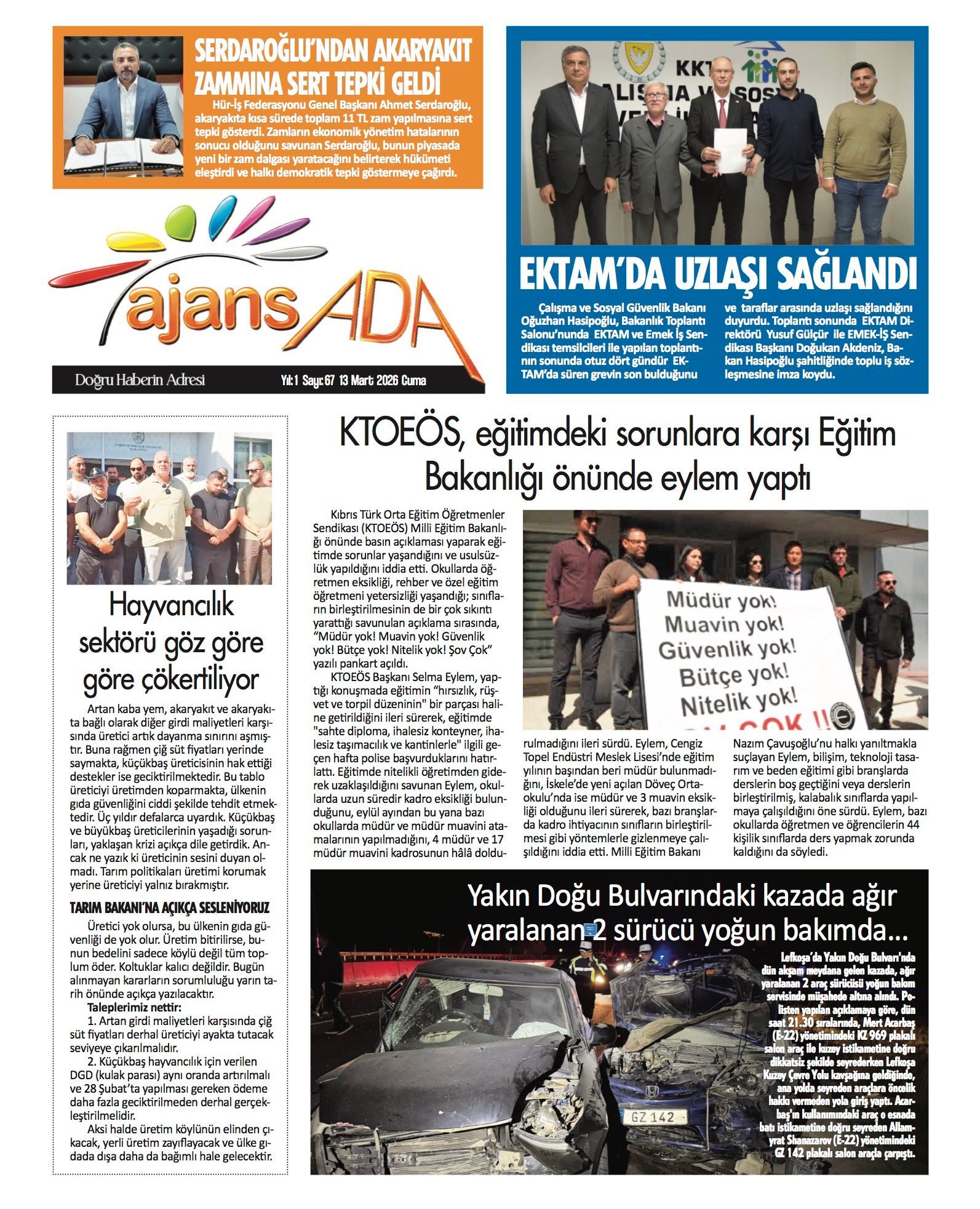 GAZETE MANŞETLERİ (13 MART 2026)