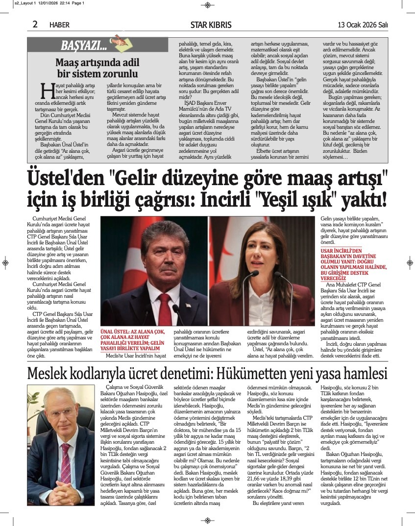 GAZETE MANŞETLERİ (13 OCAK 2026)