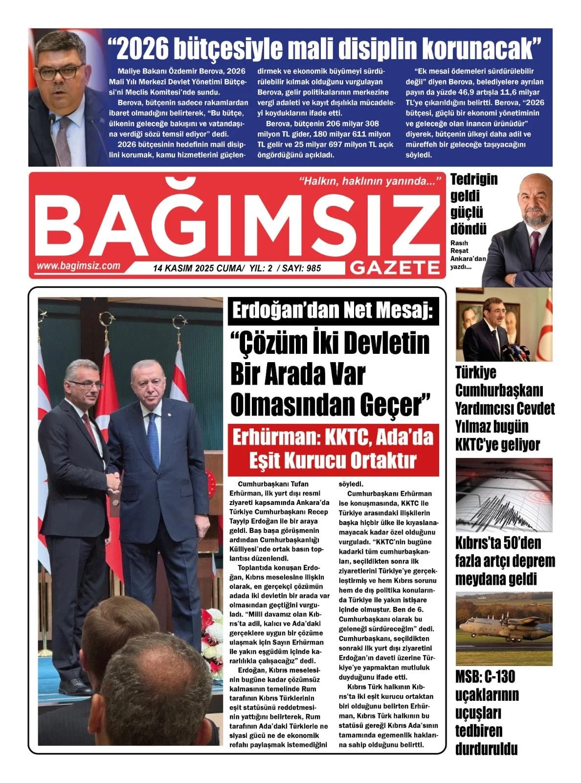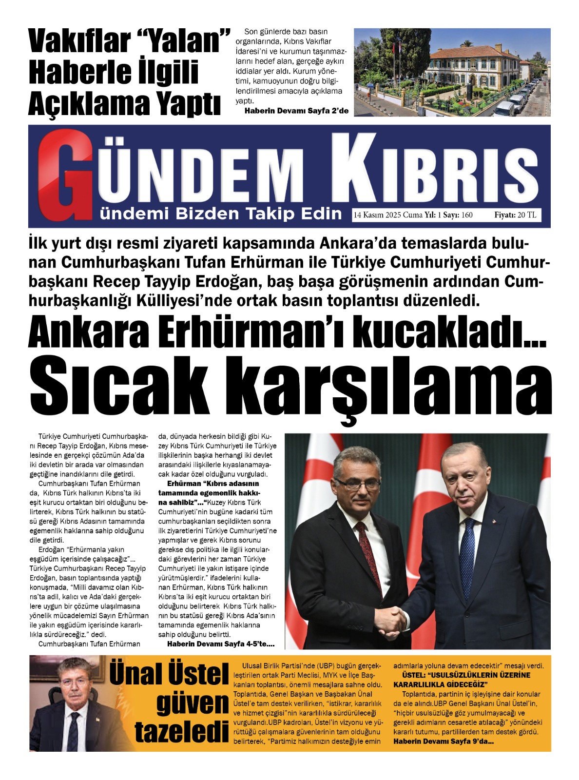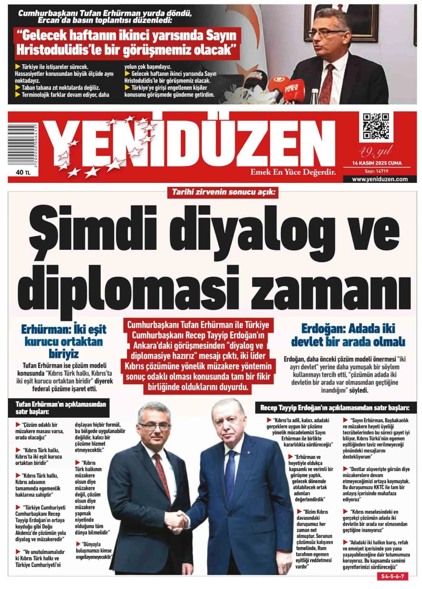 GAZETE MANŞETLERİ (14 KASIM 2025)