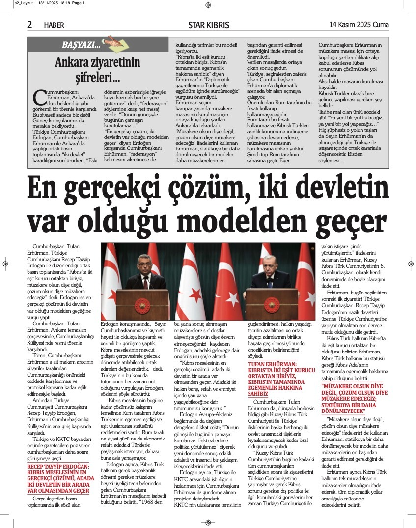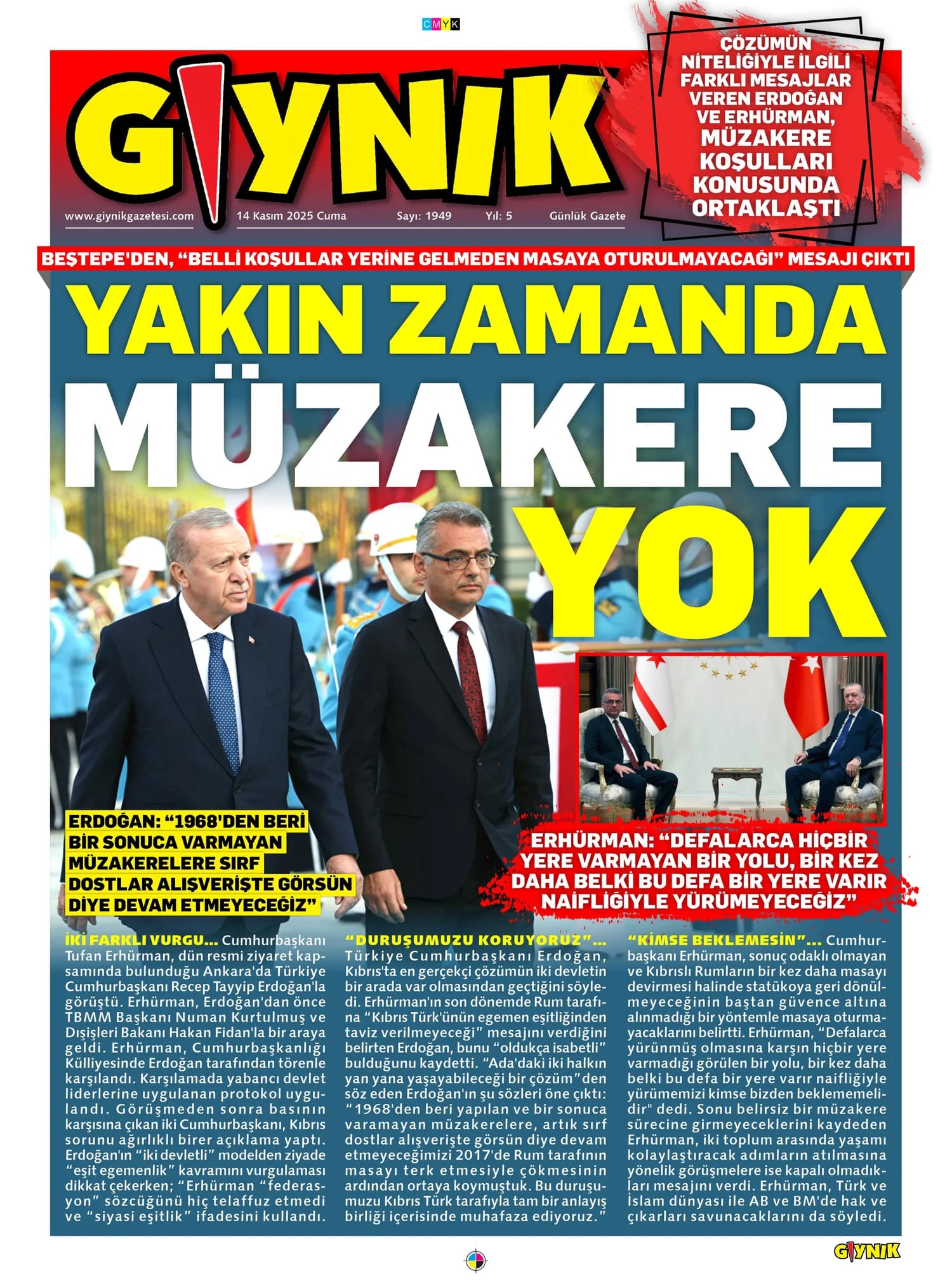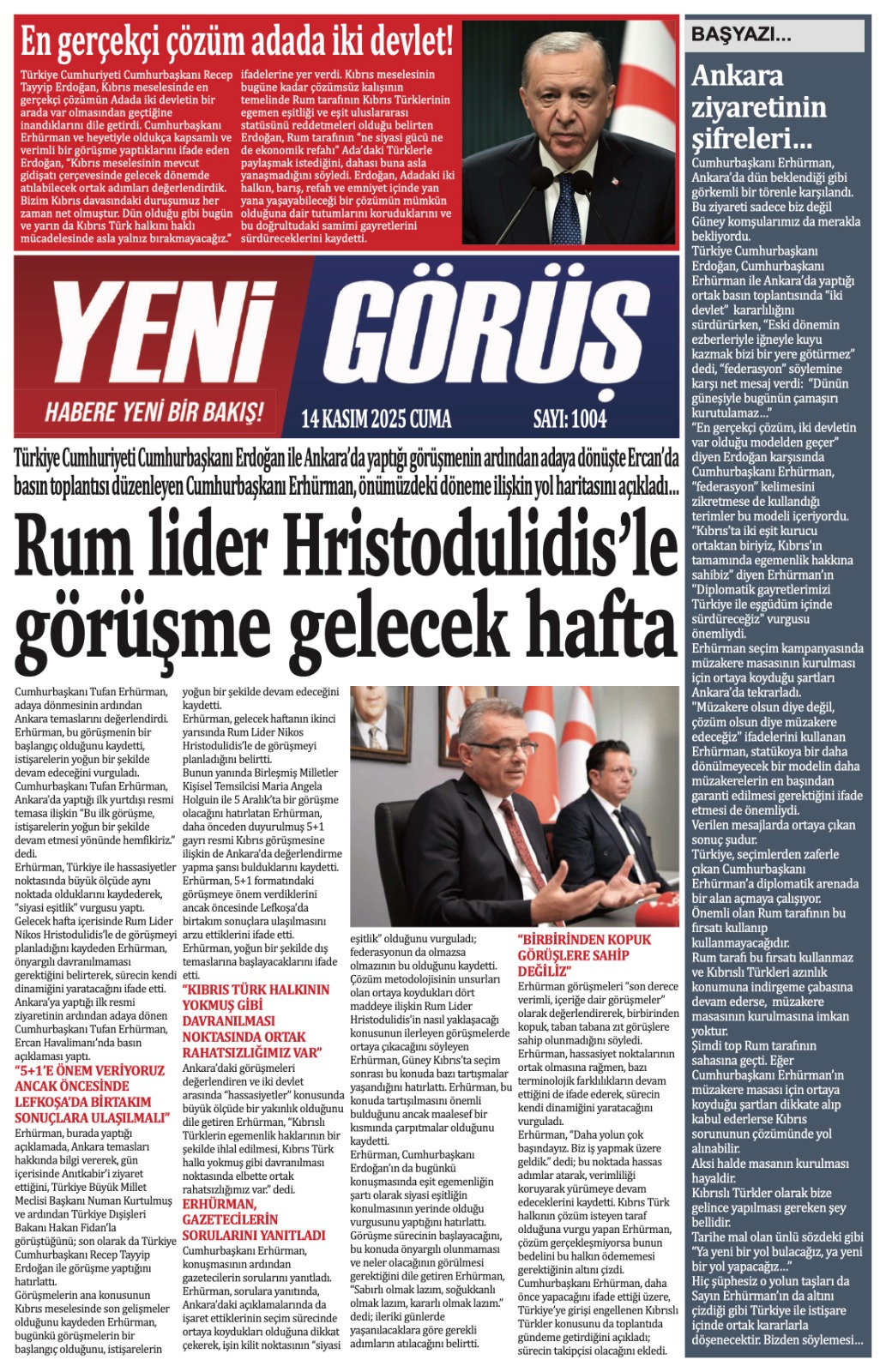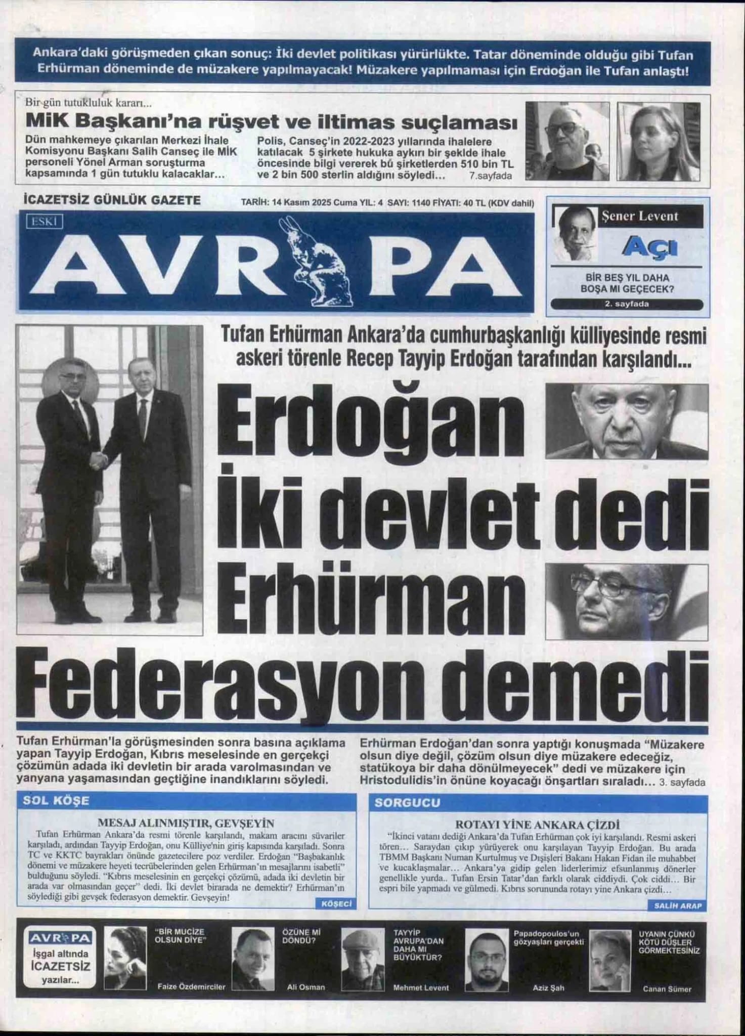 GAZETE MANŞETLERİ (14 KASIM 2025)