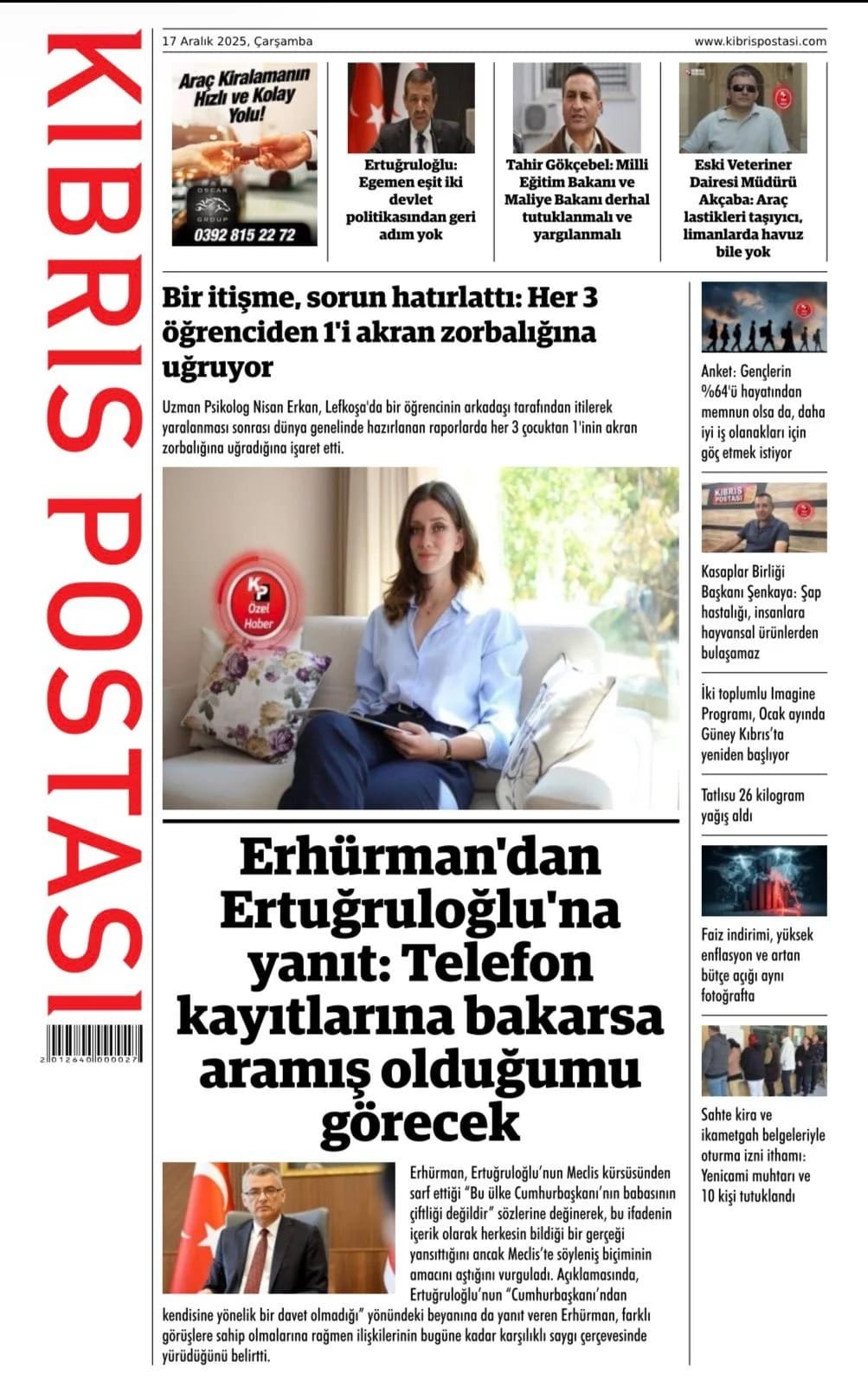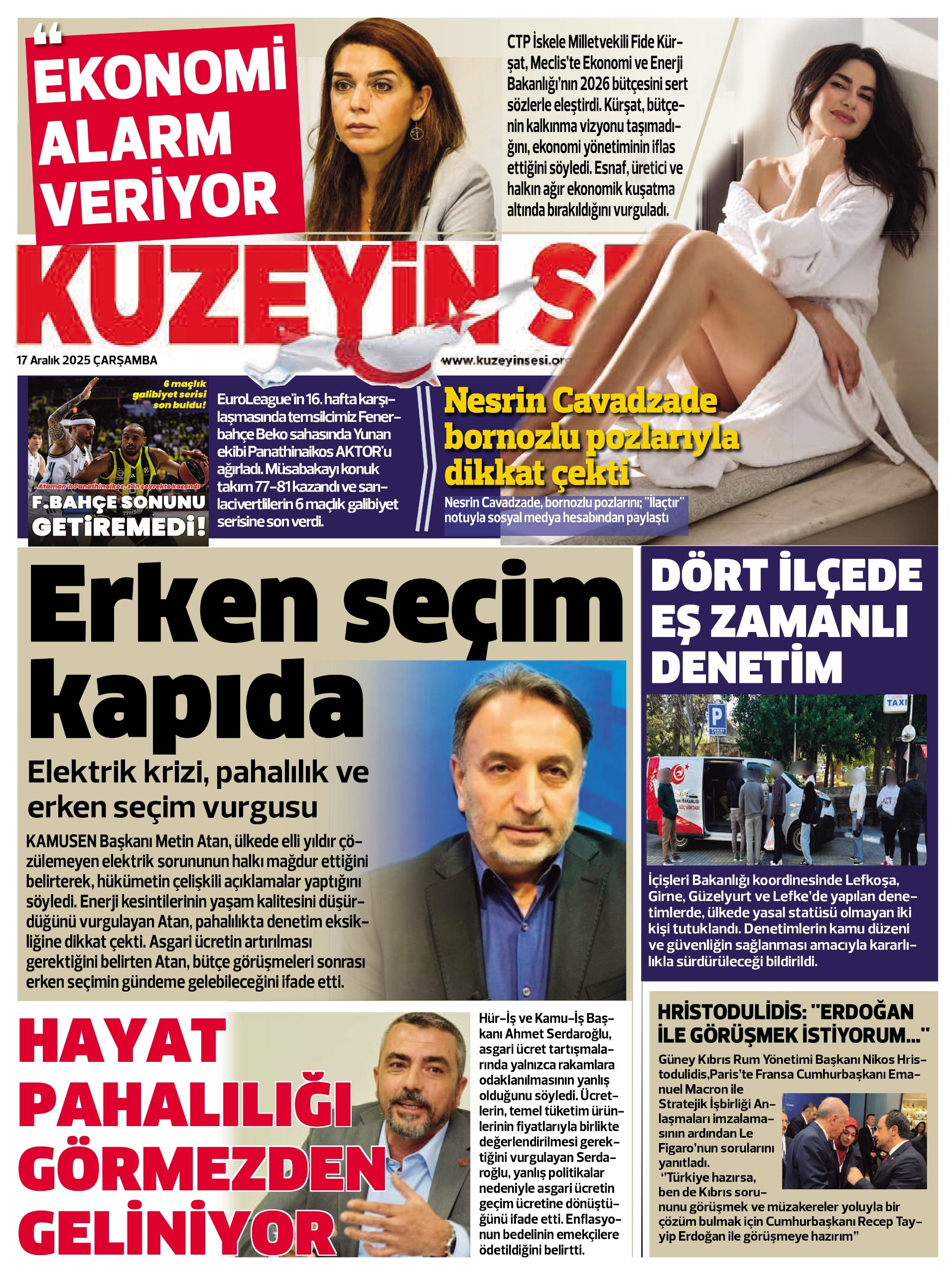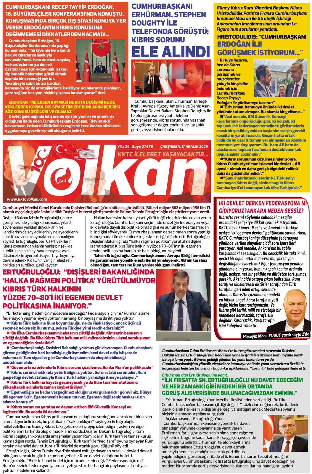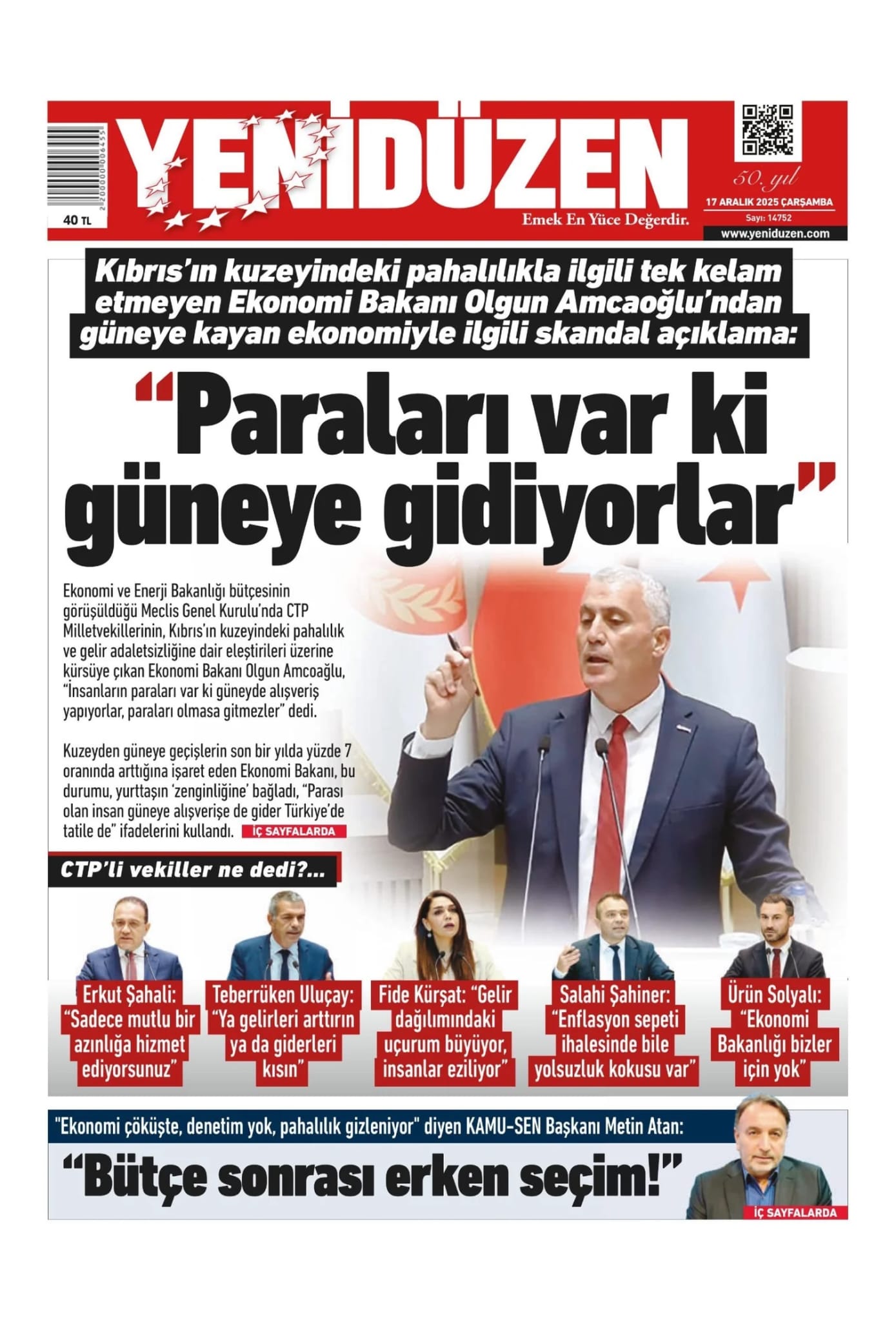 GAZETE MANŞETLERİ (17 ARALIK 2025)