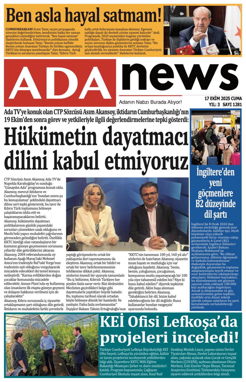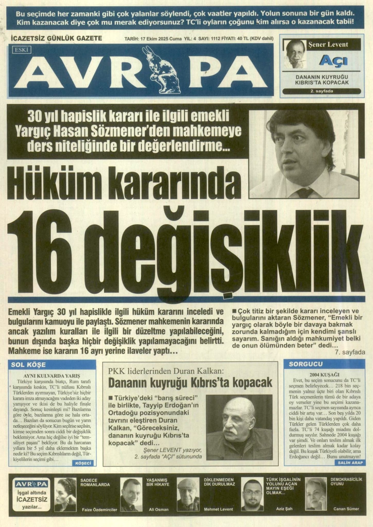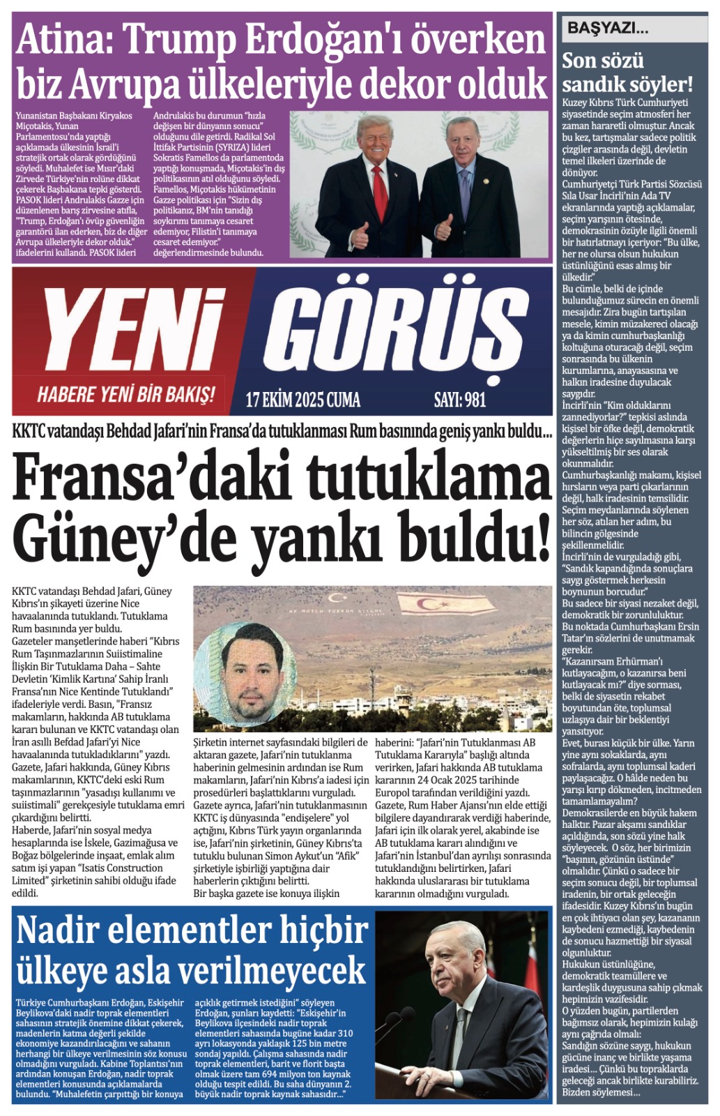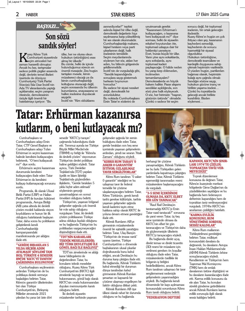 GAZETE MANŞETLERİ (17 EKİM 2025)