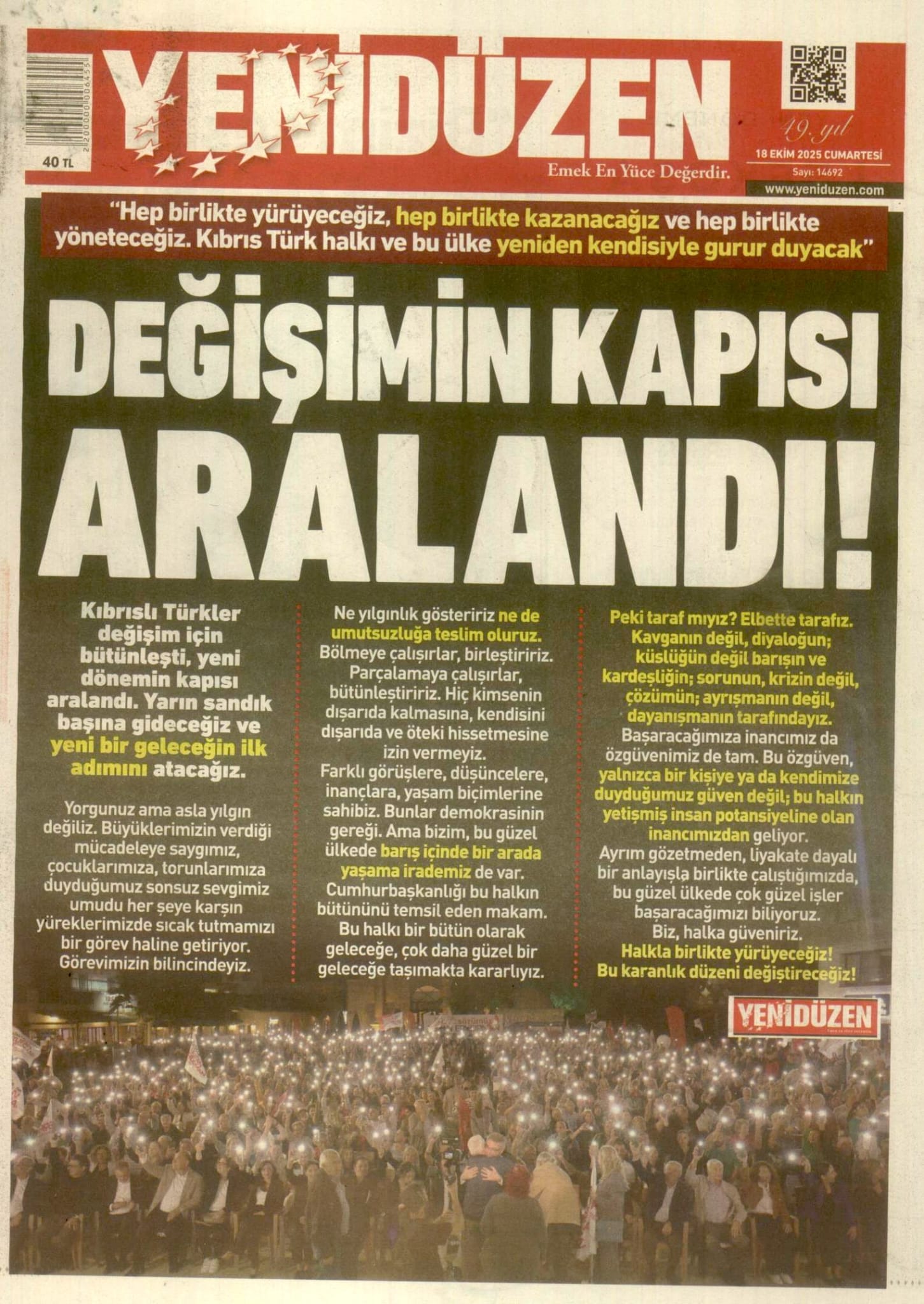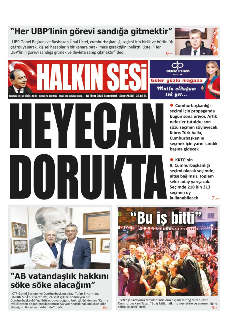 GAZETE MANŞETLERİ (18 EKİM 2025)