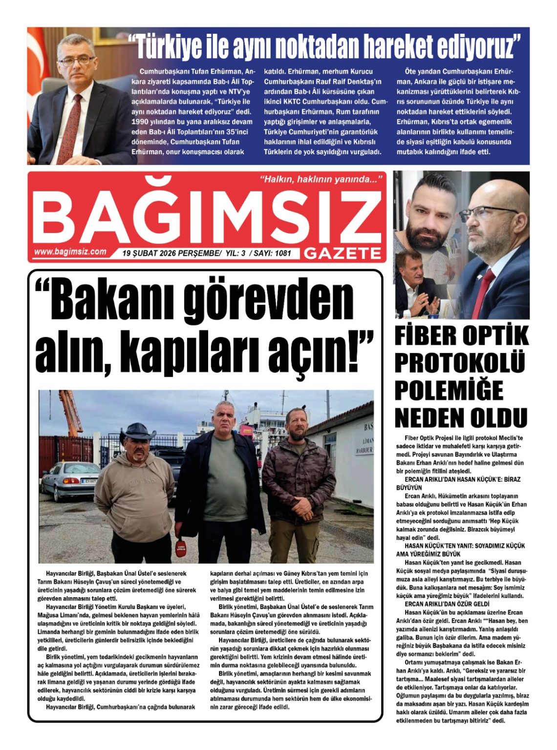 HASİPOĞLU’NDAN CTP'YE "FİBER OPTİK PROTOKOLÜNE DESTEK VERİN" ÇAĞRISI