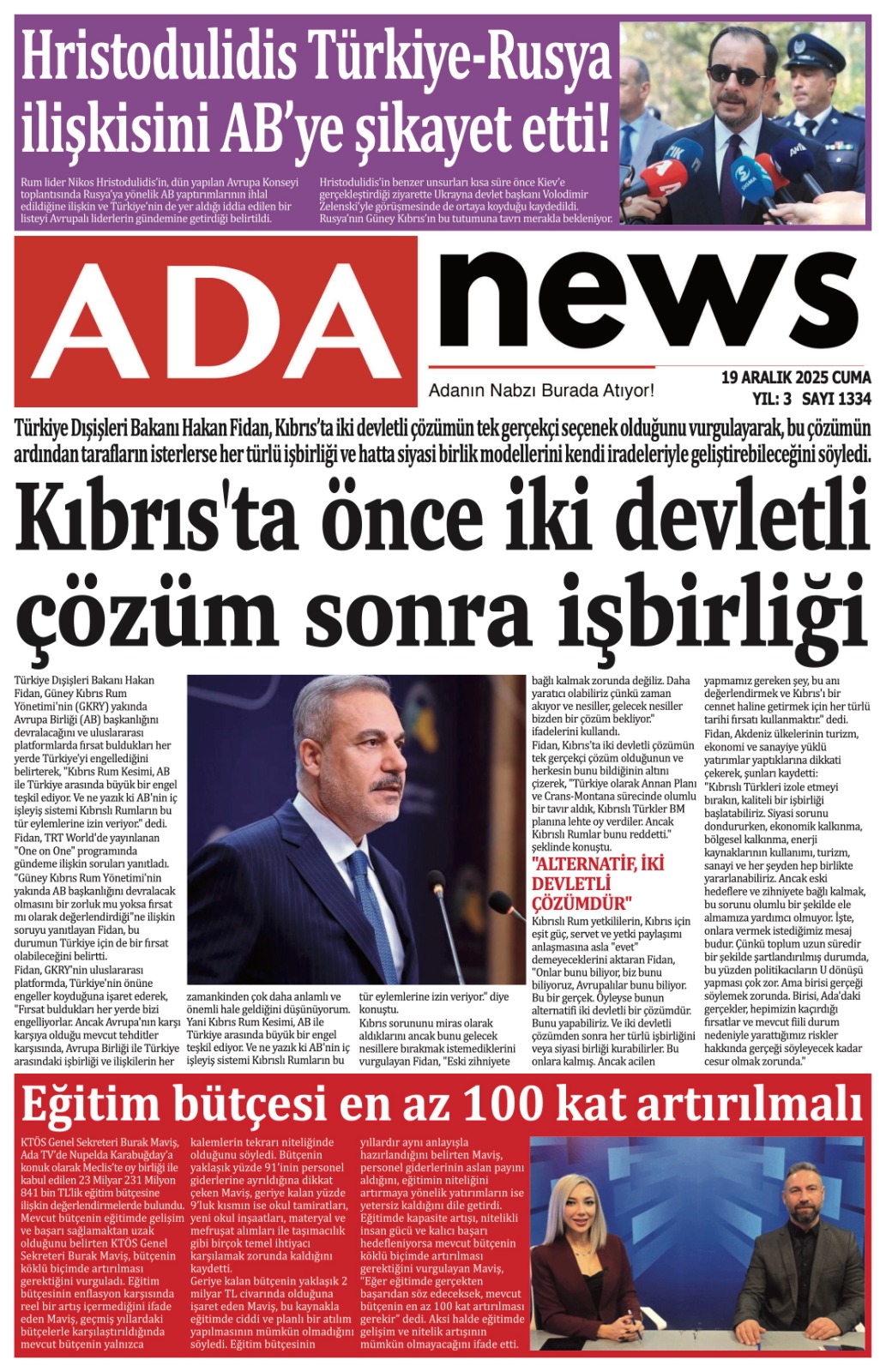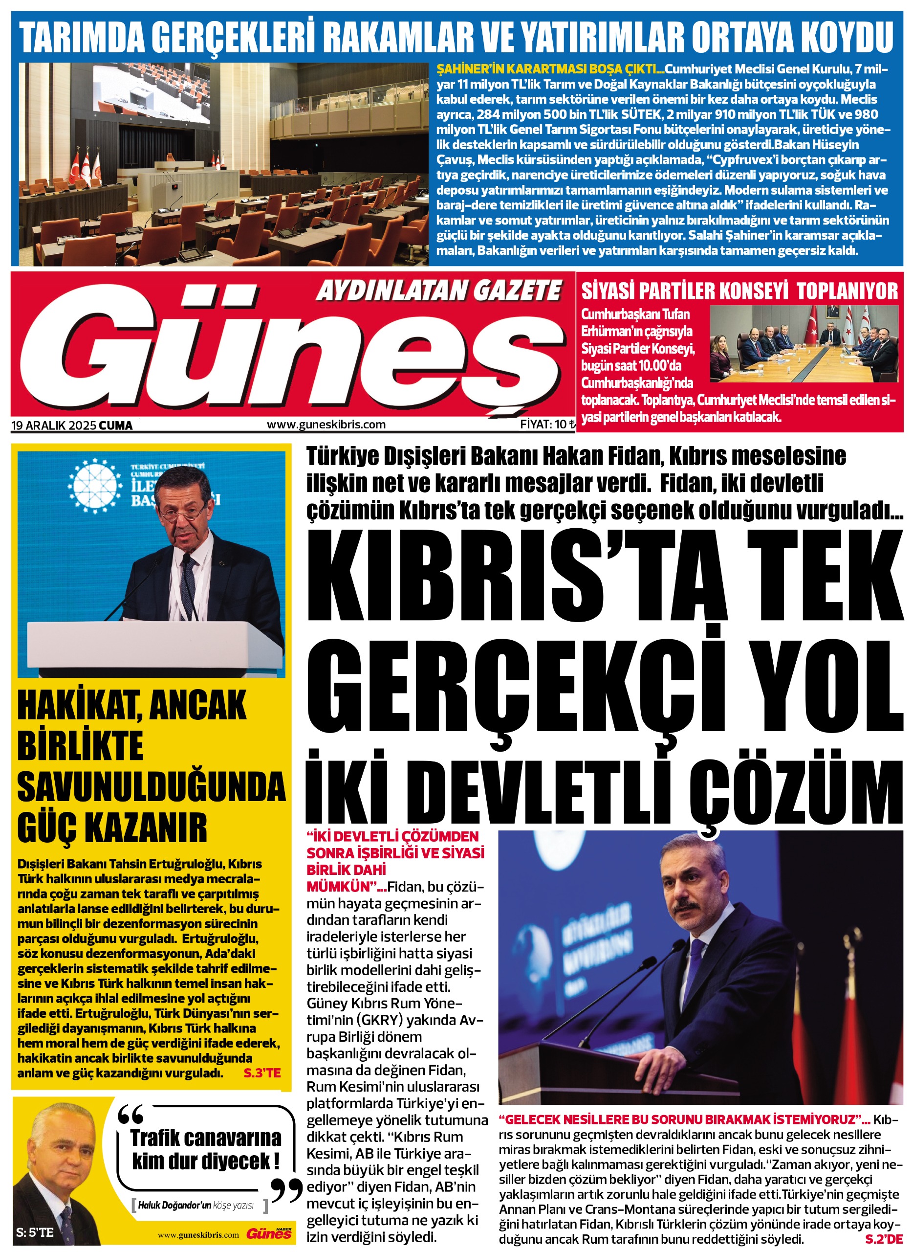 GAZETE MANŞETLERİ (19 ARALIK 2025)