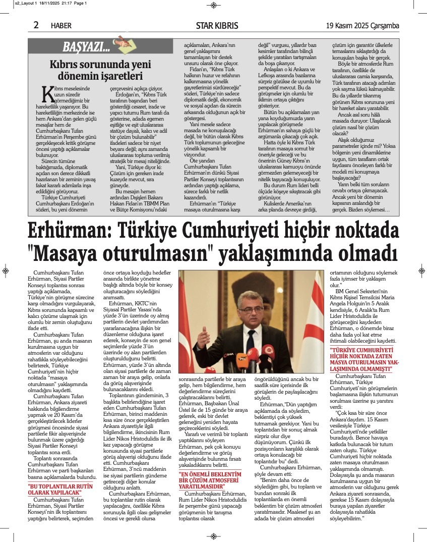 GAZETE MANŞETLERİ (19 KASIM 2025)