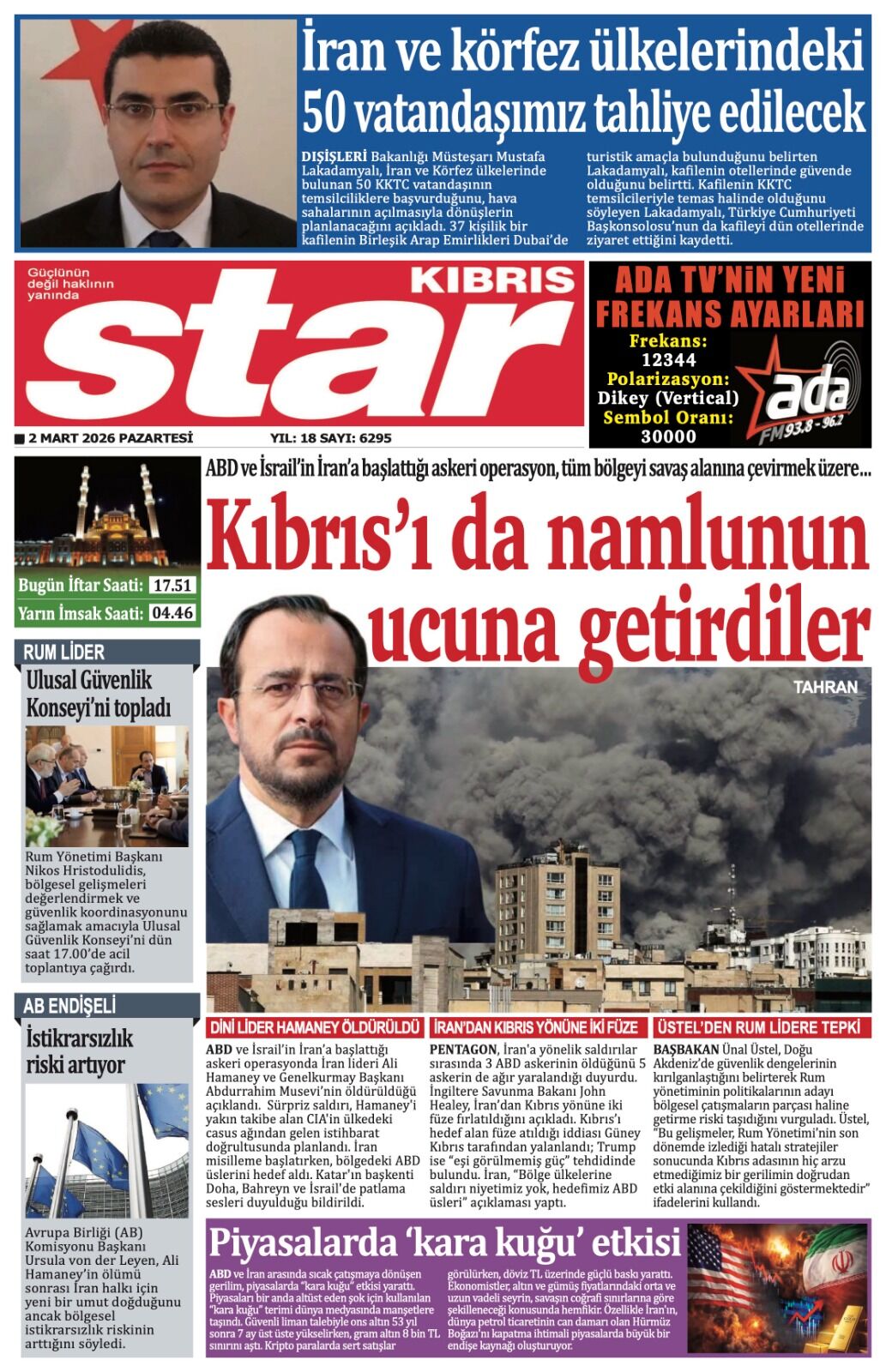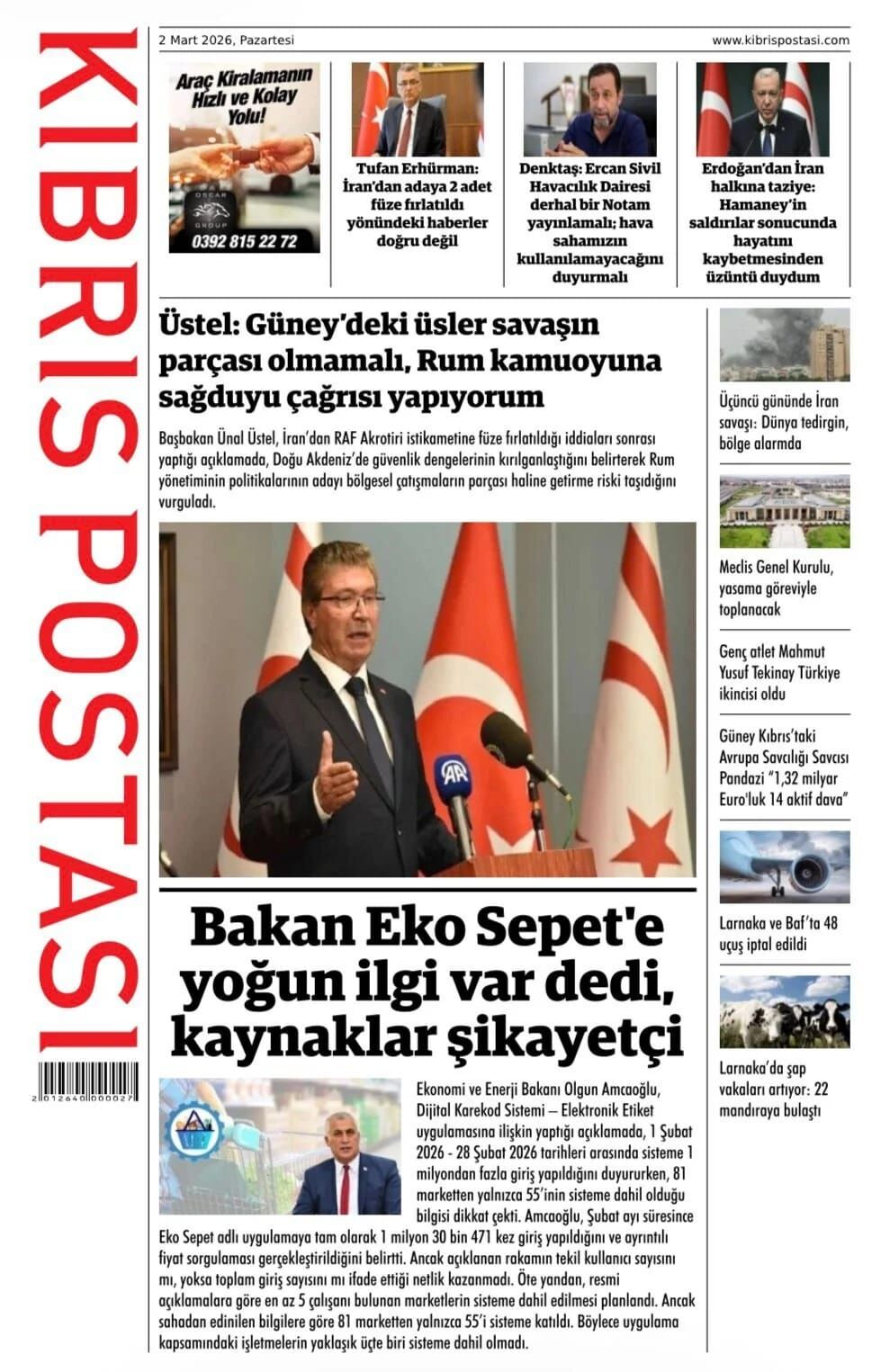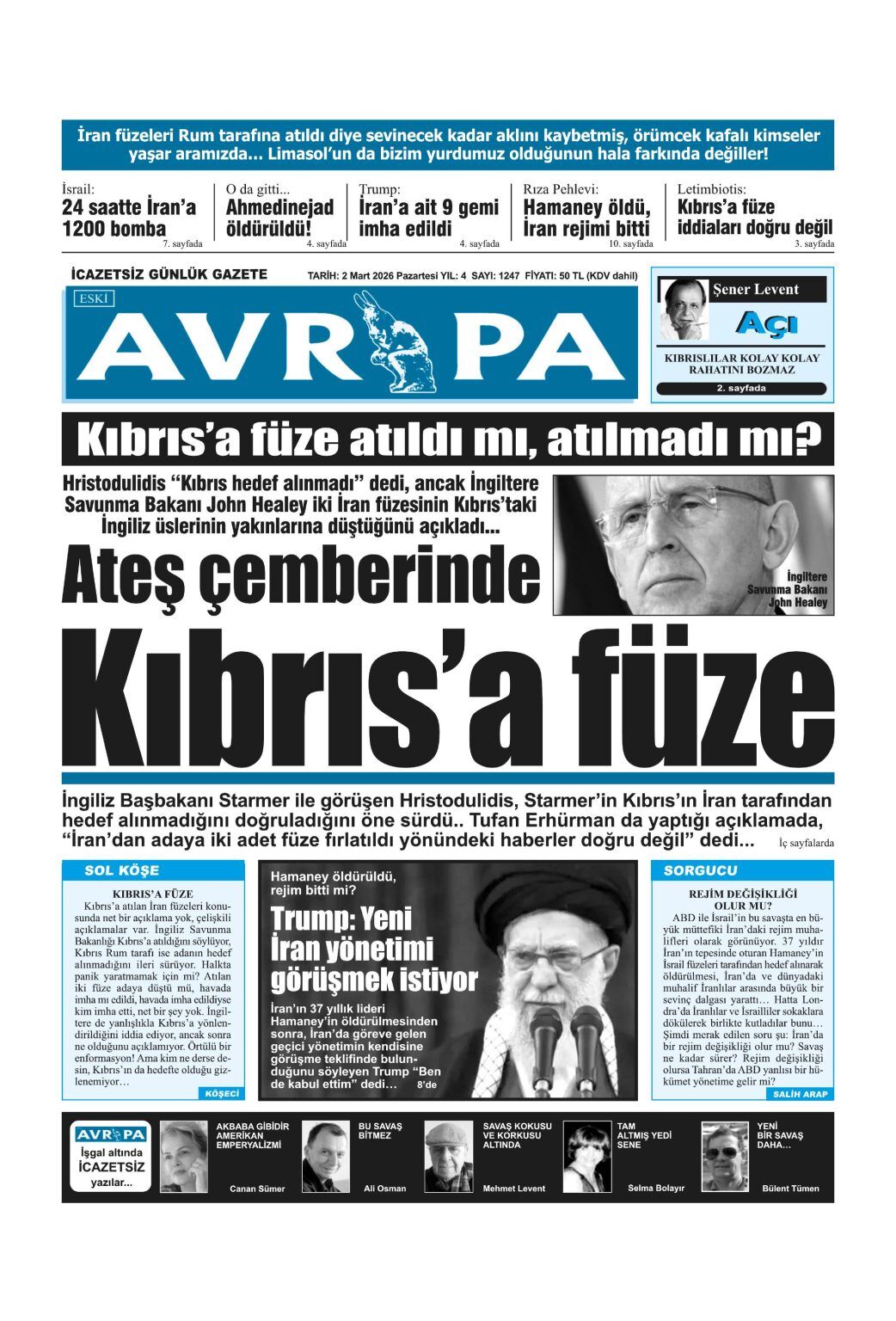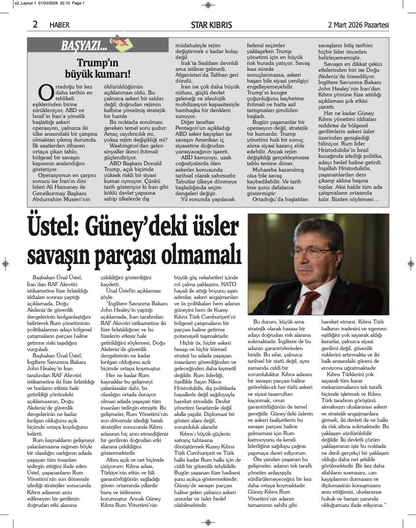 GAZETE MANŞETLERİ (2 MART 2026)