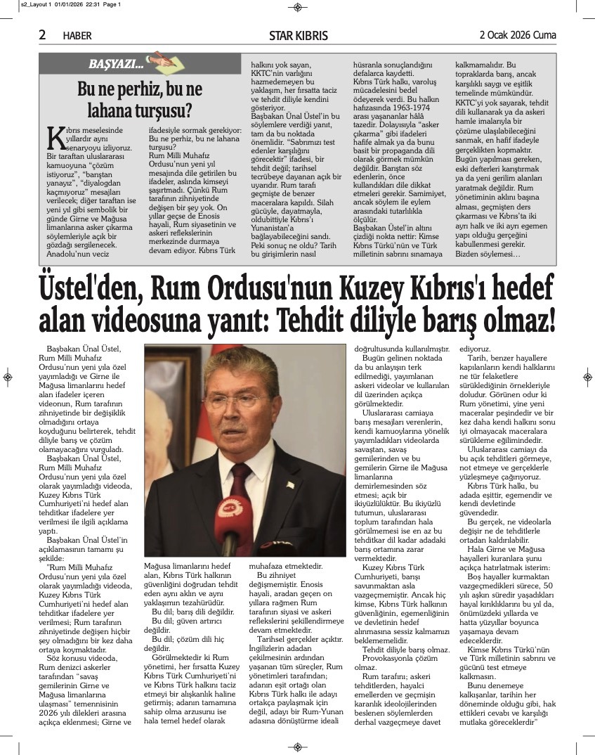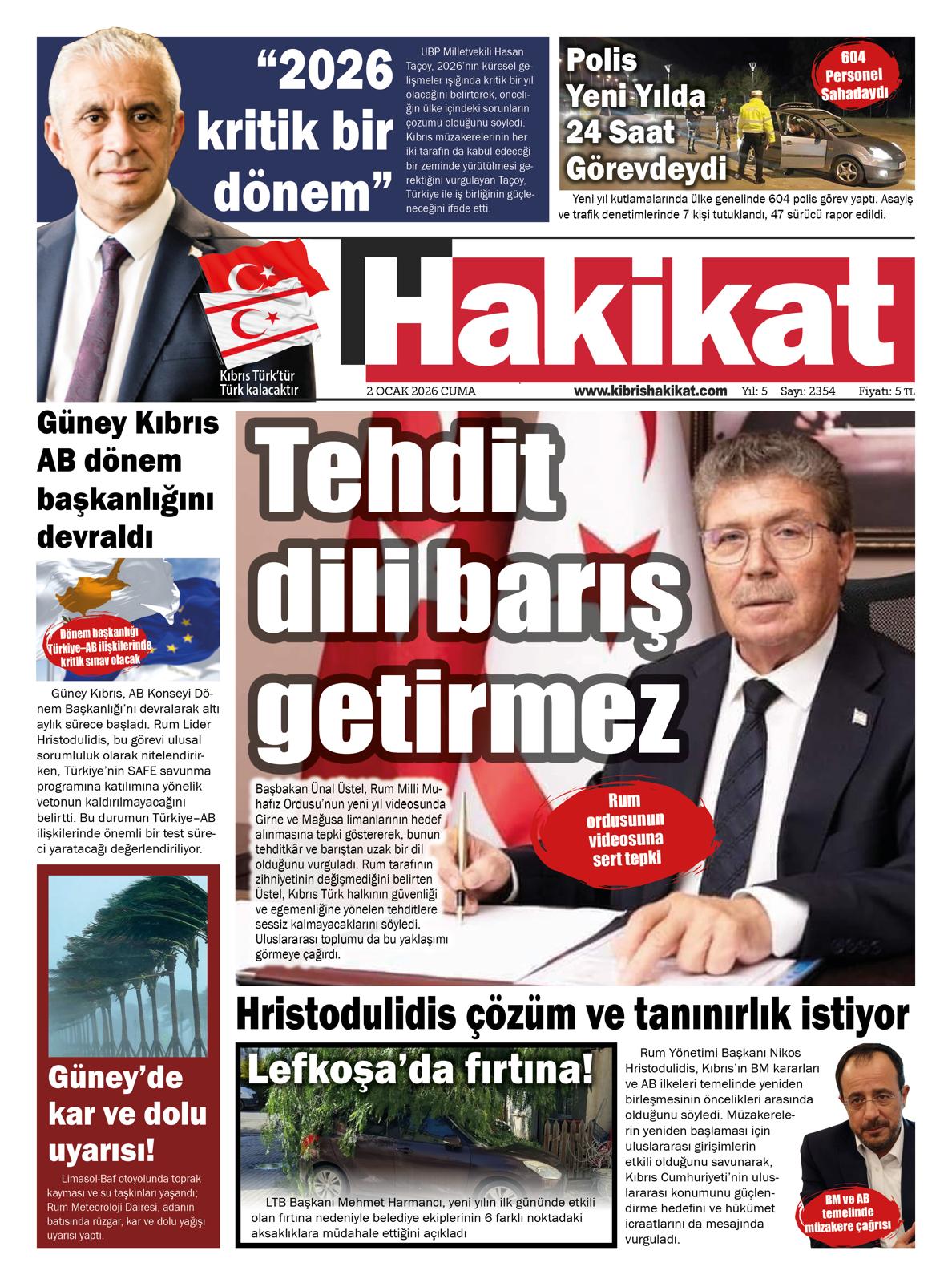 GAZETE MANŞETLERİ (2 OCAK 2026)